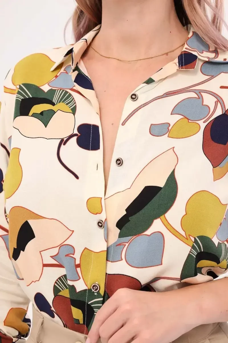 ayollar ko'ylagi, uzun yengli ko'ylak, krem rangli ko'ylak, naqshli ko'ylak, ARM-22K001123, kiyim, moda, ayollar kiyimi, kundalik kiyim, zamonaviy ko'ylak