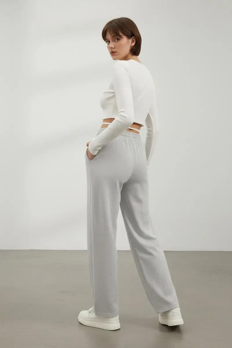Ayollar uchun kulrang baland bel qismli keng oyoqli ikki cho'ntakli sport shim ALC-X7957, kundalik kiyimlaringiz, sport kiyimlaringiz yoki sport poyafzallingiz bilan mukammal uyg'unlashadi. Siz uni turli xil yuqori kiyimlar bilan birlashtirib, ham zamonaviy, ham qulay ko'rinish yaratishingiz mumkin.