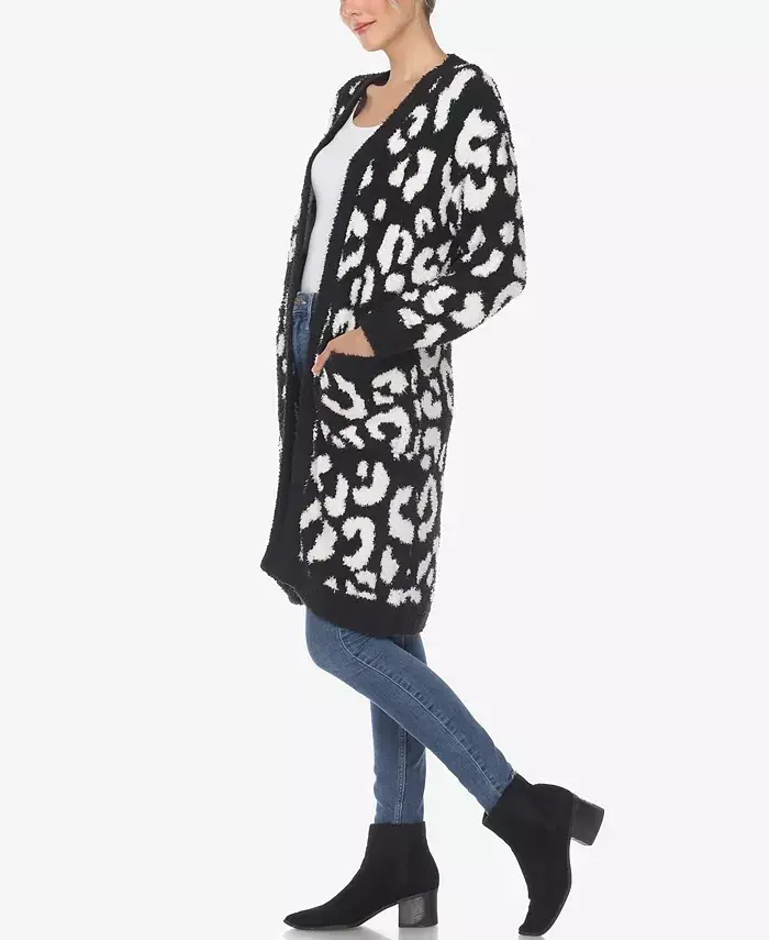 Ayollar uchun leopard naqshli ochiq old sherpa kardigan