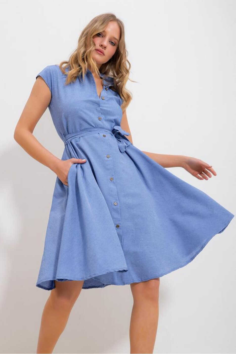 Chiroyli va chiroyli kiyinishni yaxshi ko'radigan ayollar uchun mo'ljallangan qisqa yengli va ko'ylak yoqali bo'sh kesilgan model bilan trendli ko'rinishga ega, Relax Fit, yozga eng mos mato bilan yoz oylarining ajralmas modasi bo'ladi, kamar detali bilan uslubga ega, sandal, terlik va klassik poyabzallar bilan to'ldirishingiz mumkin bo'lgan yelkasiz to'qilgan ko'ylak ko'ylak siz bilan!