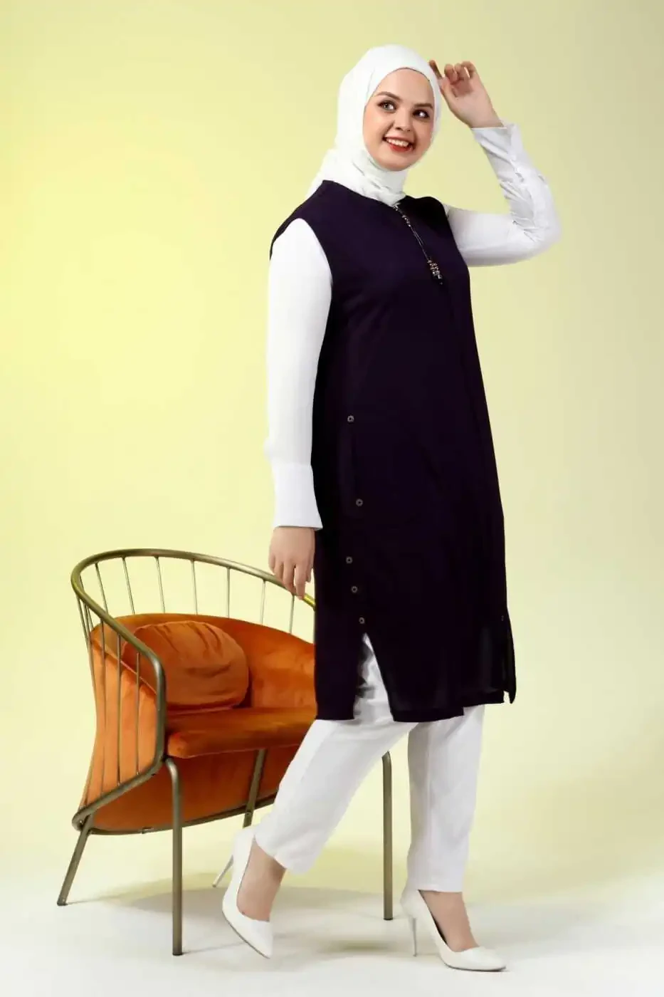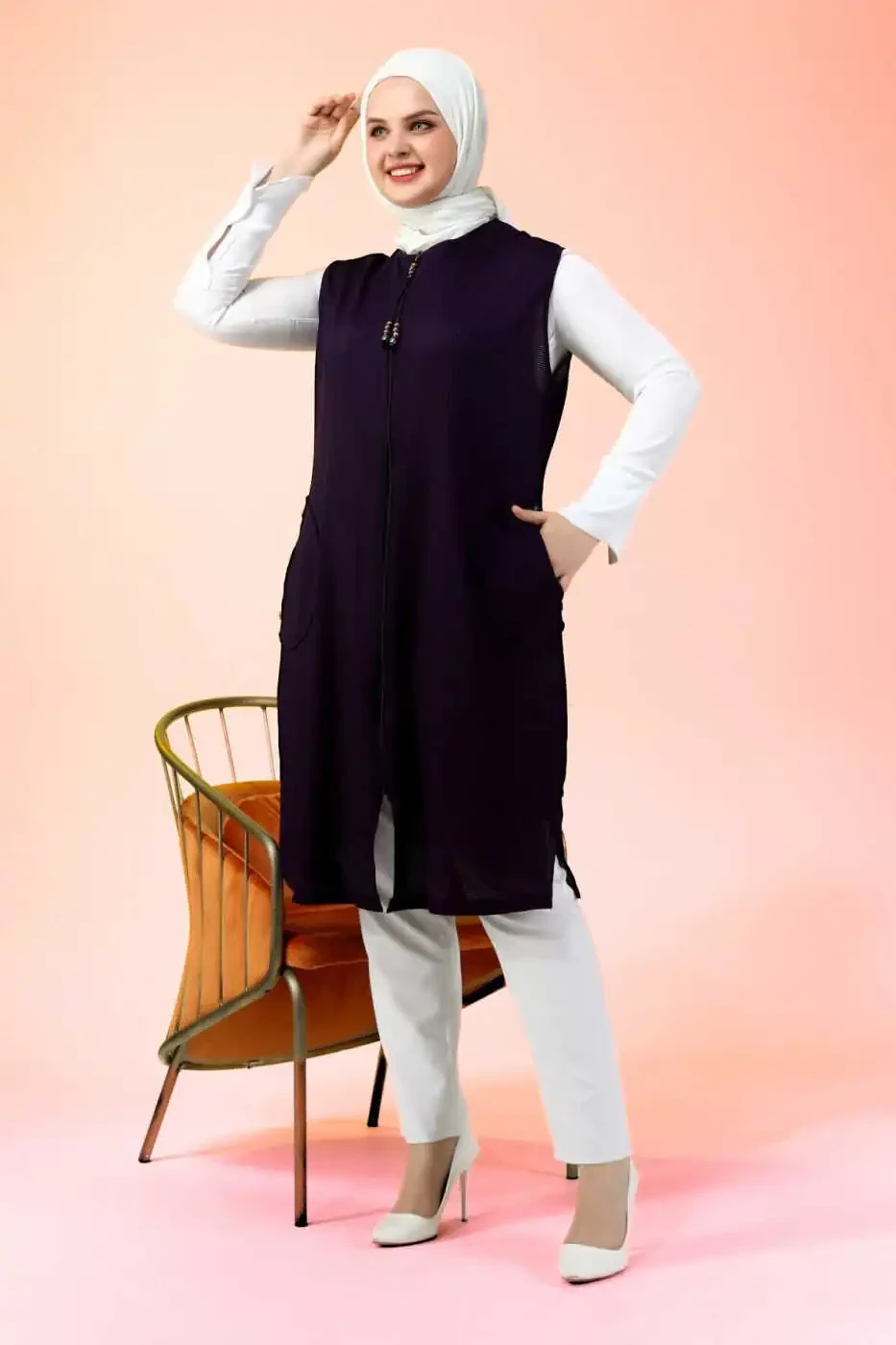 Ayollar uchun Islom kiyimlari uzun yozgi cho'ntakli fermuarli yelek - bu uslub va amaliylikni birlashtirgan mukammal tanlovdir. U ham kundalik foydalanish uchun, ham maxsus kunlar uchun mukammal to'ldiruvchi qism sifatida kiyimingizga zamonaviylik baxsh etadi.