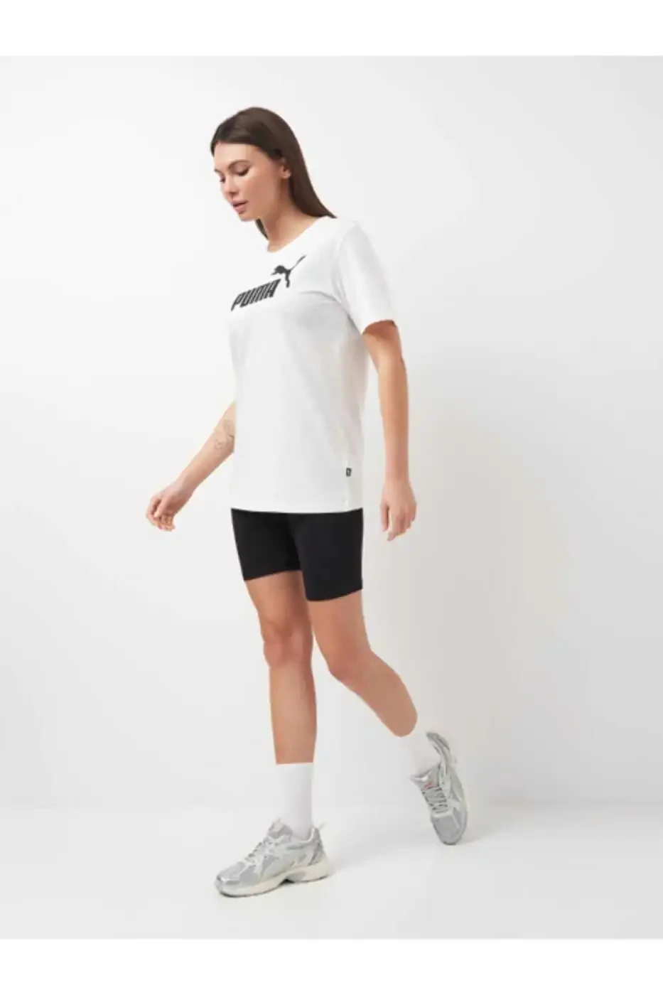 Ayollar futbolkasi, oq futbolka, boyfriend futbolka, krujka bo'yinli futbolka, essential logo, har kuni kiyim, qulay futbolka, zamonaviy futbolka, paxta futbolka