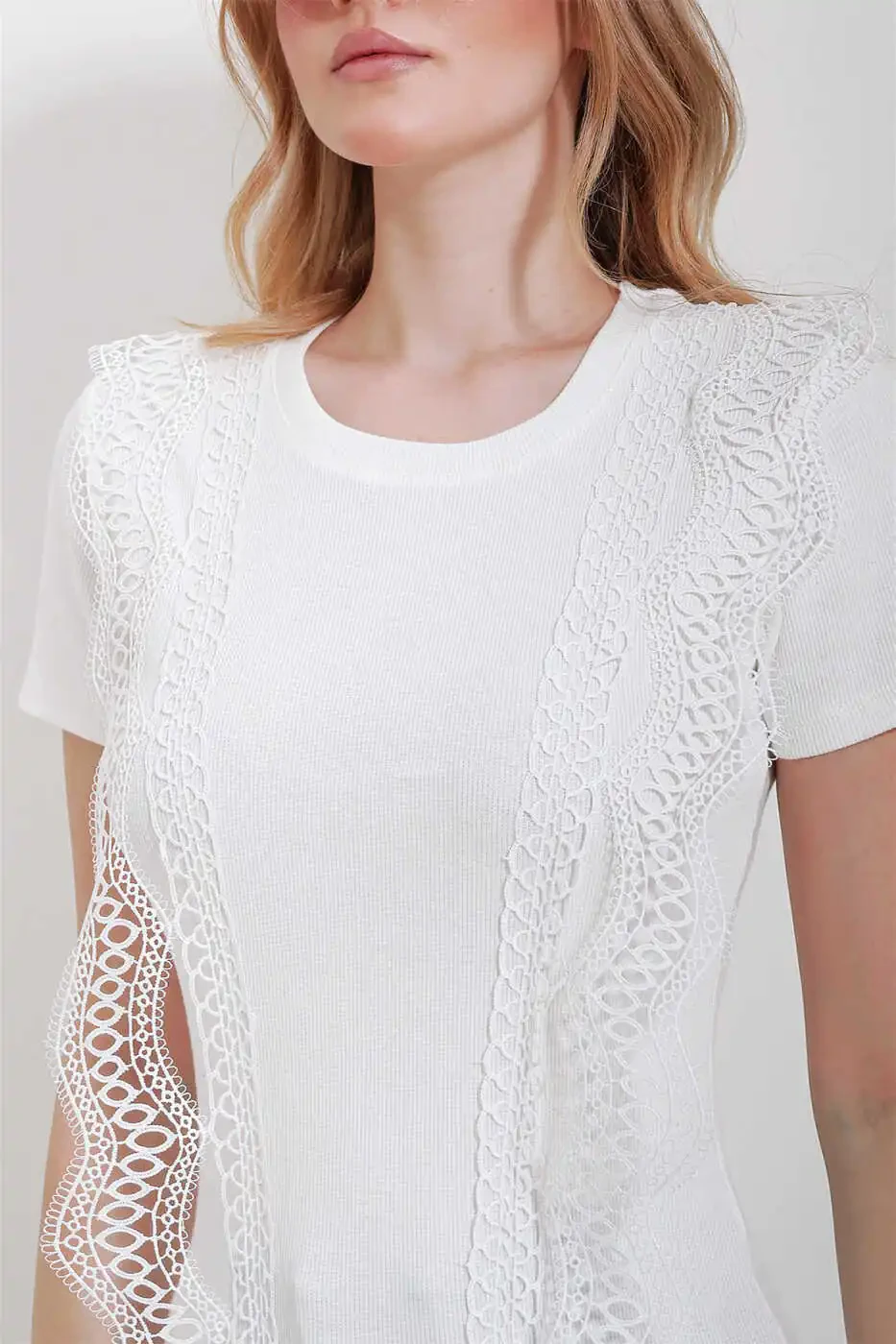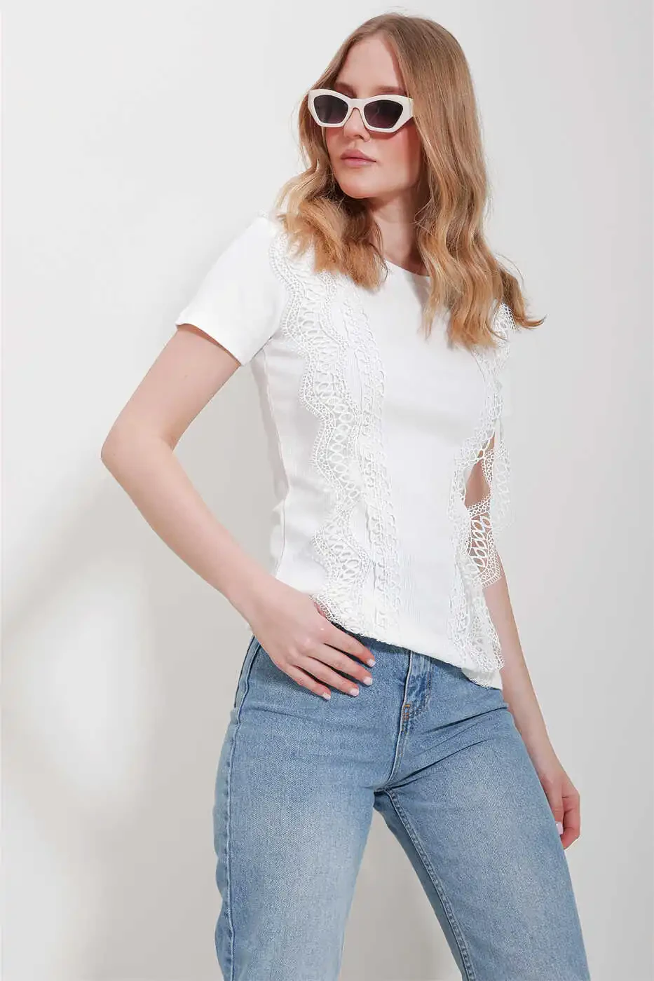 Nozik va zamonaviy ko'rinishga ega bo'lishni istagan ayollar uchun ajoyib tanlov bo'lgan Ayollar uchun oq rangli, gulli naqshli, yoqa bilan jihozlangan bluzka, kiyim shkafingizning ajralmas qismiga aylanadi. Bluzka, yoqa dizayni bilan o'ziga xoslik baxsh etuvchi, gulli naqshli bezaklar bilan ham jozibali ko'rinishga ega. Yengil va nafas oladigan matosi bilan qulay foydalanishni ta'minlaydigan bluzka, har mavsumda tanlashingiz mumkin bo'lgan kiyim. Kundalik kiyimlaringizda, maxsus kunlarda yoki ish hayotida zamonaviy va o'ziga xos uslub yaratish uchun bu bluzkadan foydalanishingiz mumkin.