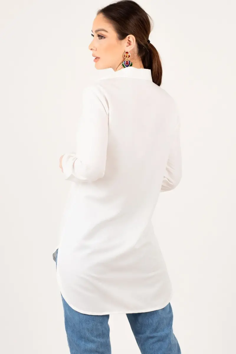 ARM-19Y001003 Ayollar uchun oq tunika ko'ylak bilan uslubingizni yuksaltiring!