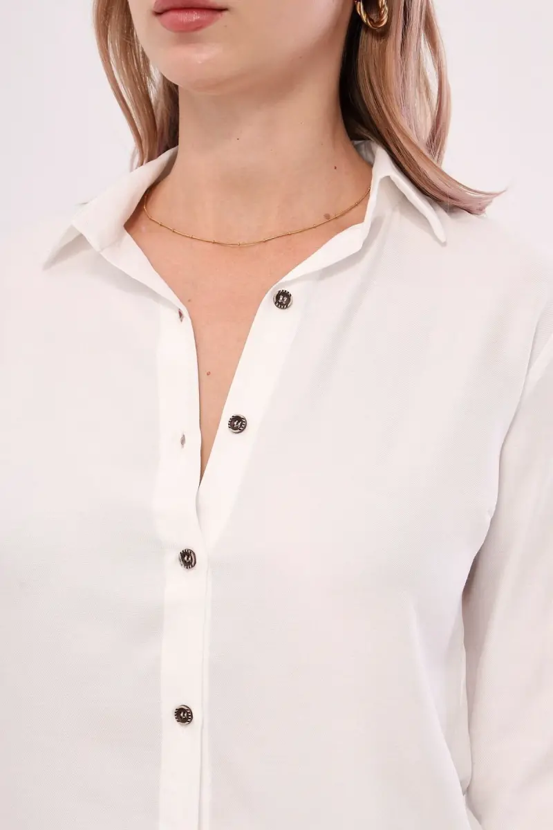 Yumshoq va nafas oladigan to'qimasi bilan kun bo'yi qulaylikni ta'minlaydigan ko'ylak, uzun yenglari bilan o'tish fasllarida sizni iliq ushlab turadi. Oddiy dizayni minimalistik oqlanganlikni taqdim etadi, ko'ylakni har qanday aksessuar bilan to'ldirish mumkin. Nozik marjon yoki zamonaviy kamar kombinatsiyangizni yanada jozibador qilishi mumkin.