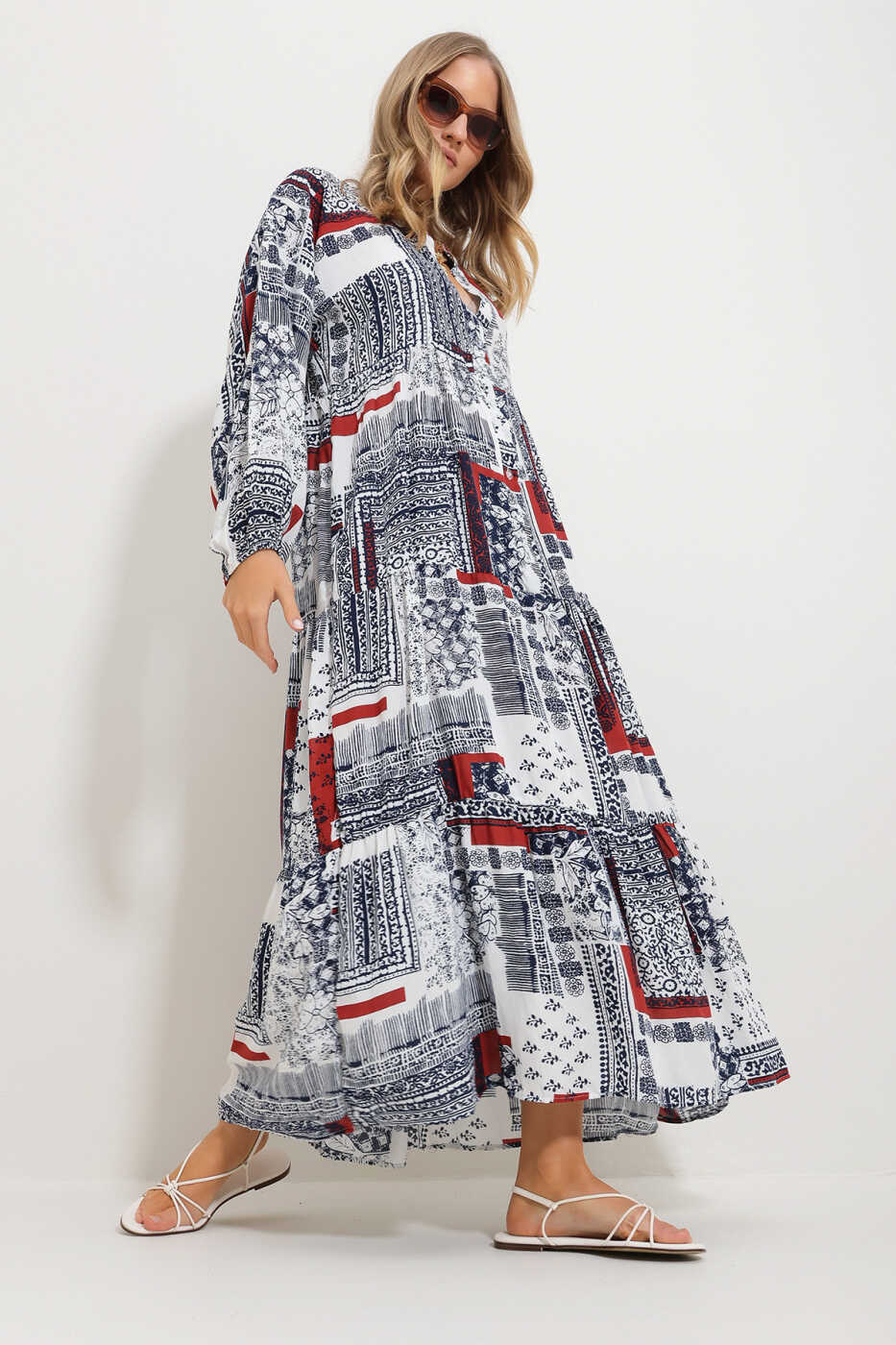Bu ko'ylakni kundalik hayotda, maxsus tadbirlarda yoki kechki ovqatlarda bemalol kiyishingiz mumkin. Sport poyabzallari bilan birlashtirib, kundalik uslubni yaratib, poshnali poyabzallar bilan esa yanada oqlangan ko'rinish hosil qilishingiz mumkin. Agar siz uslub va qulaylikdan voz kechmasdan o'zingizning uslubingizni aks ettirmoqchi bo'lsangiz, Ayollar uchun qizil rangli mandarin yoqali, shal naqshli maxi ko'ylak Alc-X11593 sizga mos keladi.