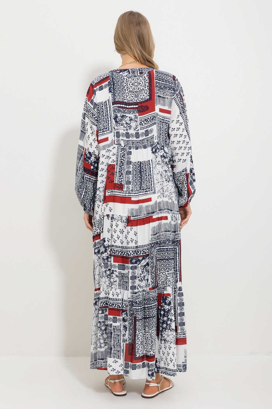 Uslub va qulaylikni birlashtirgan Ayollar uchun qizil rangli mandarin yoqali, shal naqshli maxi ko'ylak Alc-X11593 sizning garderobingizning ajralmas qismi bo'ladi. Oqlangan mandarin yoqasi va nafis shal naqshi bilan e'tiborni jalb qiladigan ko'ylak, maxi kesimi bilan qulaylik va uslubni taqdim etadi. Qizil rangi har qanday teri rangiga mos keladi, sizni yanada chiroyli ko'rsatadi.
