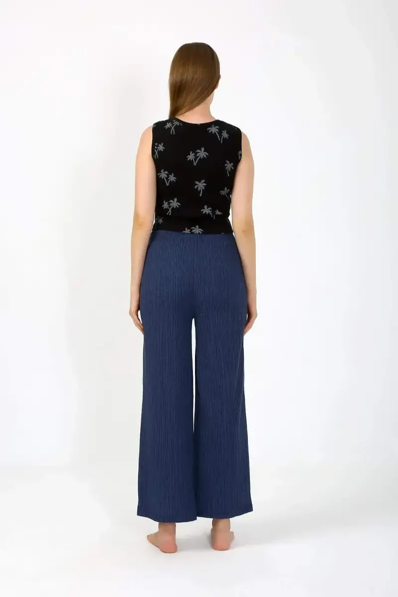Замонавий аёл боди ва кенг шимли костюм (қора)