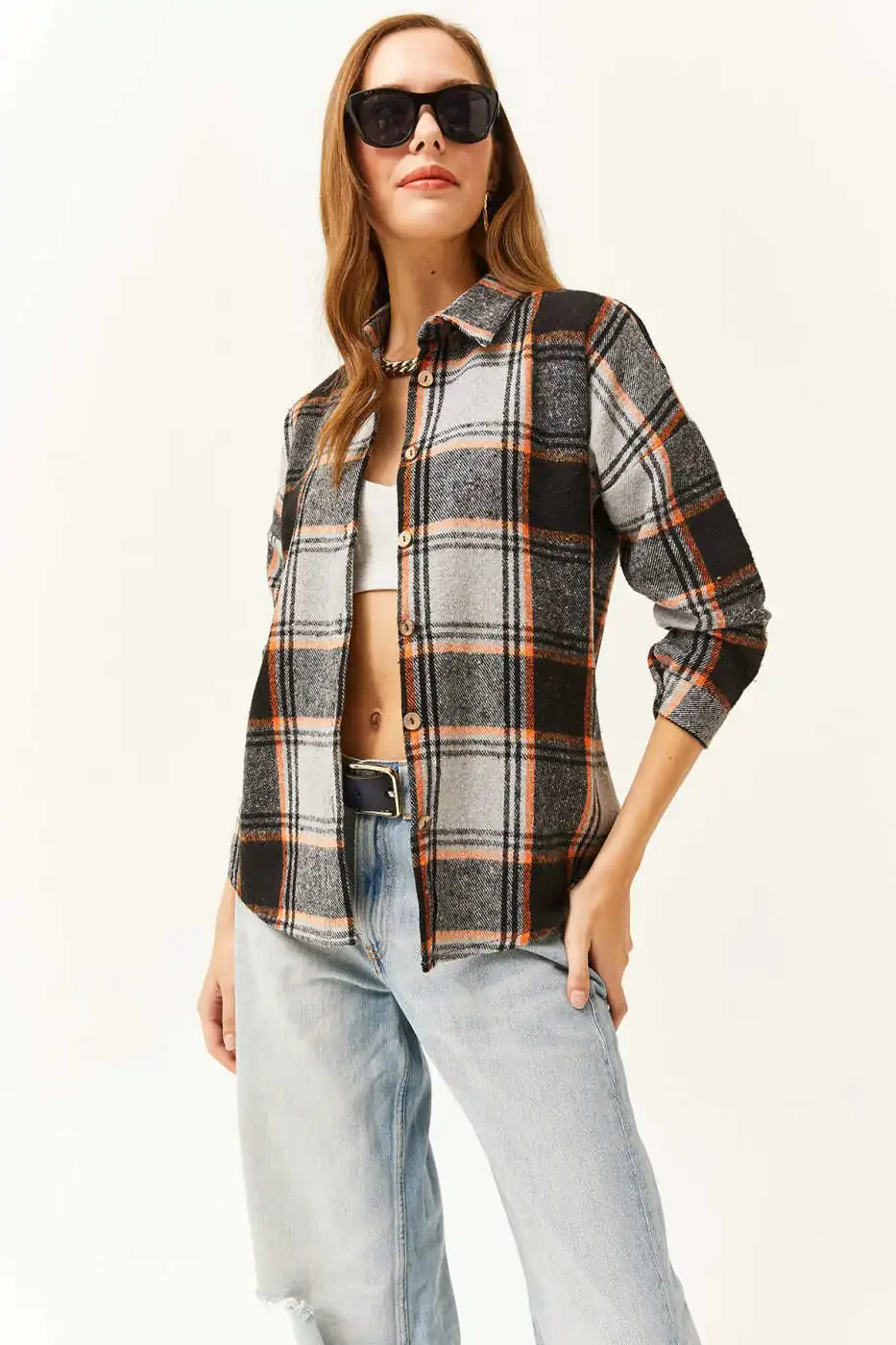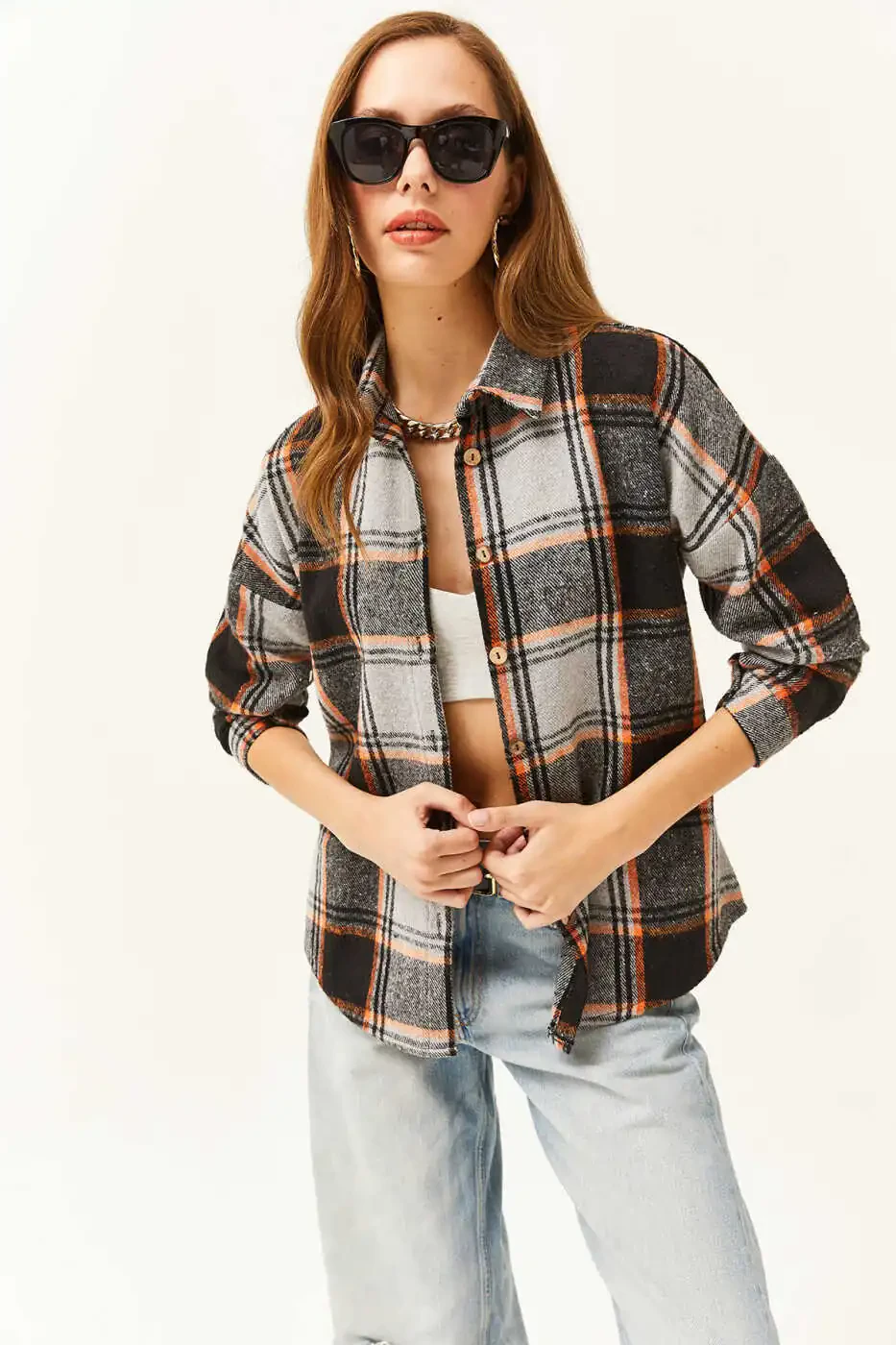 Ekose naqshining vaqtsiz nafisligi va qora, kulrang va to'q sariq ranglarning uyg'un kombinatsiyasi bu ko'ylakni garderobingizning ajralmas qismi bo'lishiga imkon beradi. Klassik hamda zamonaviy kombinatsiyalarga mos keladigan bu ko'ylak jinsi shimlar, yubkalar, legginslar yoki shortilar bilan ajoyib uyg'unlikni yaratadi.