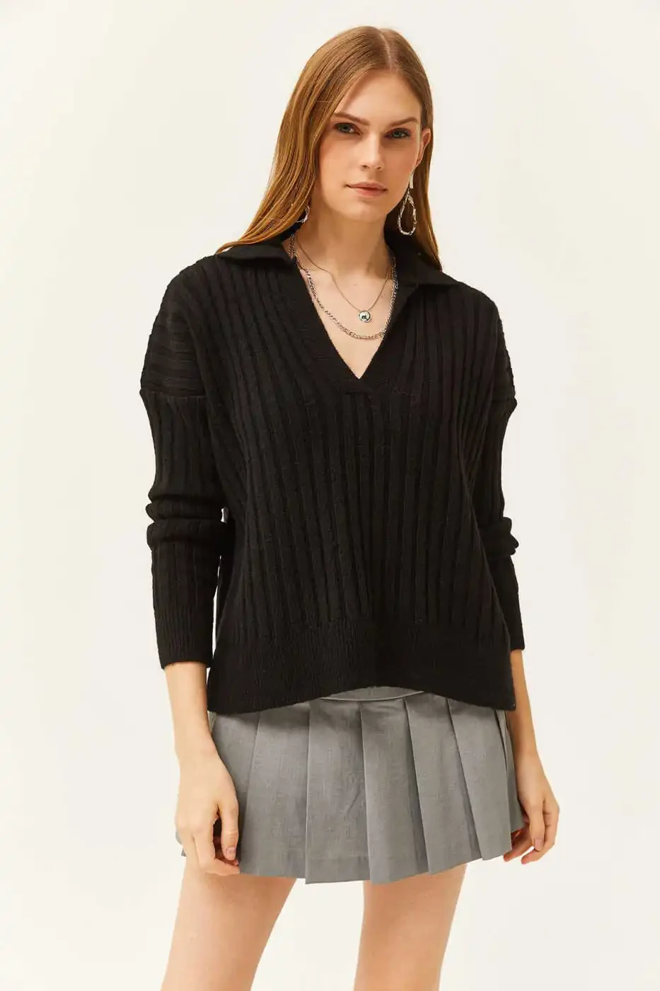 Ayollar uchun qora polo yoqali sviter | Zamonaviy va qulay | Trendyol