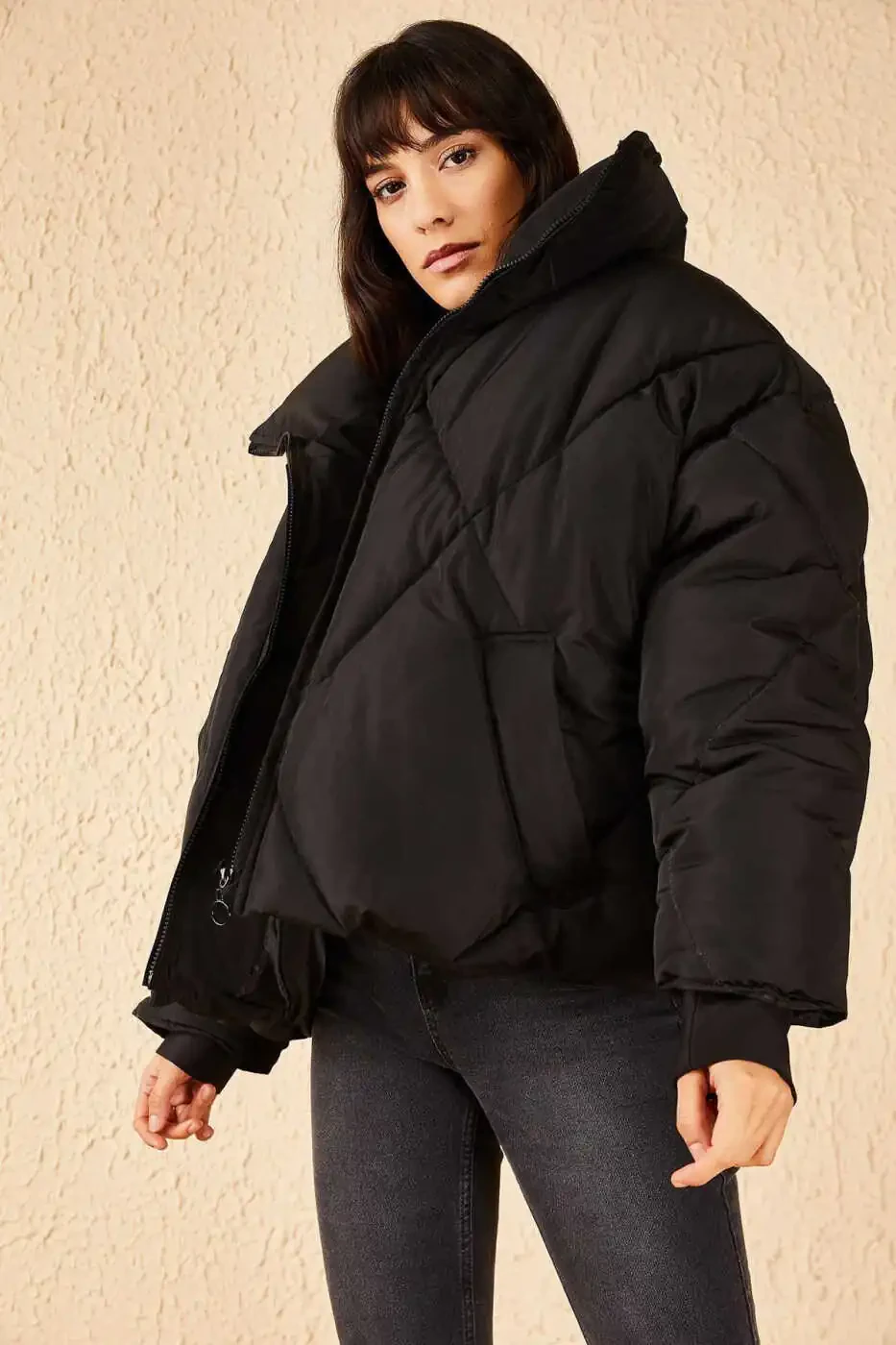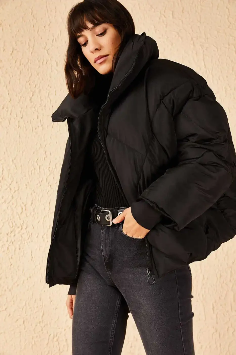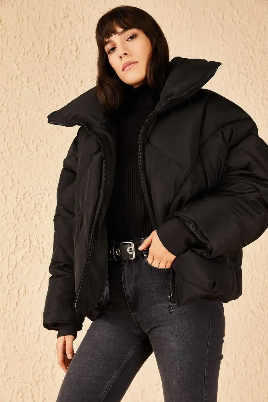 Ayollar uchun Qora Oversize Puffer Ko'ylagi bilan qish oylarini stil va issiqlikda o'tkazing!