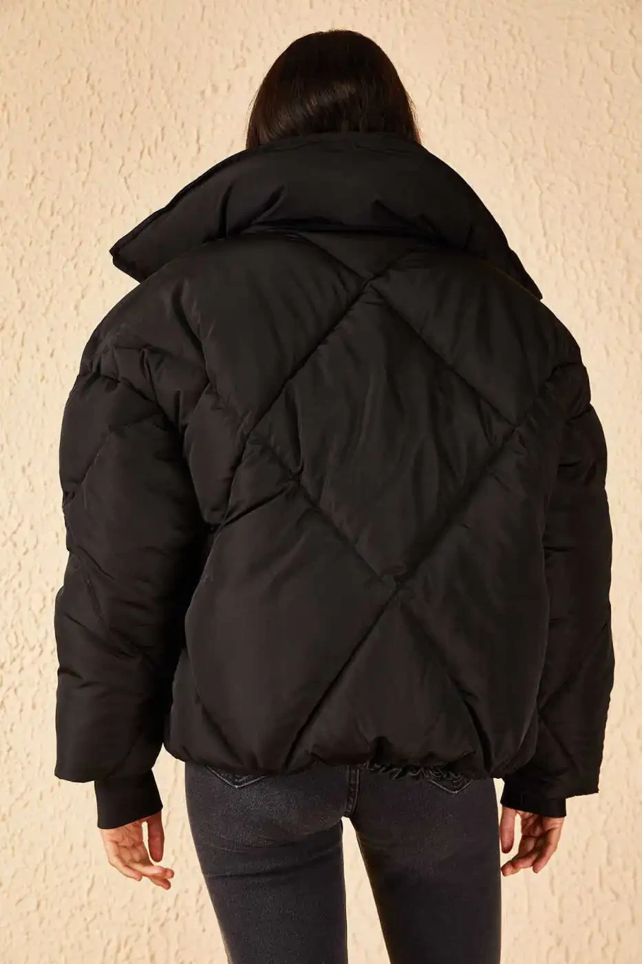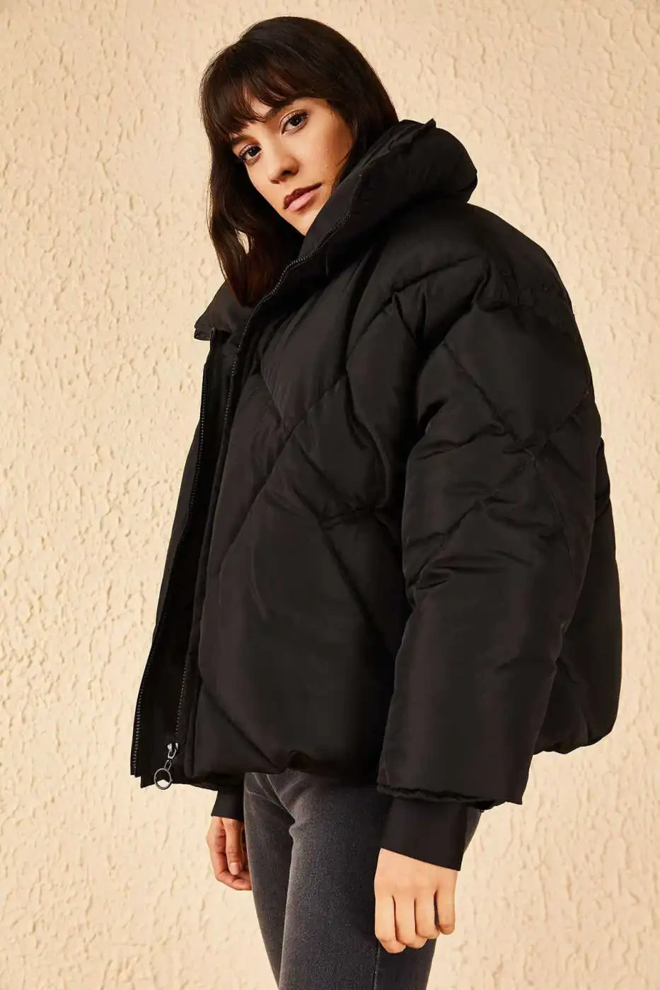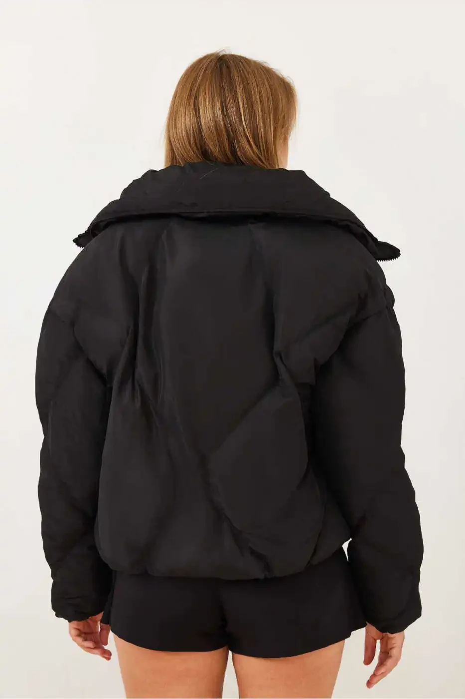 Ayollar uchun Qora Oversize Puffer Ko'ylagi bilan qish oylarini stil va issiqlikda o'tkazing!