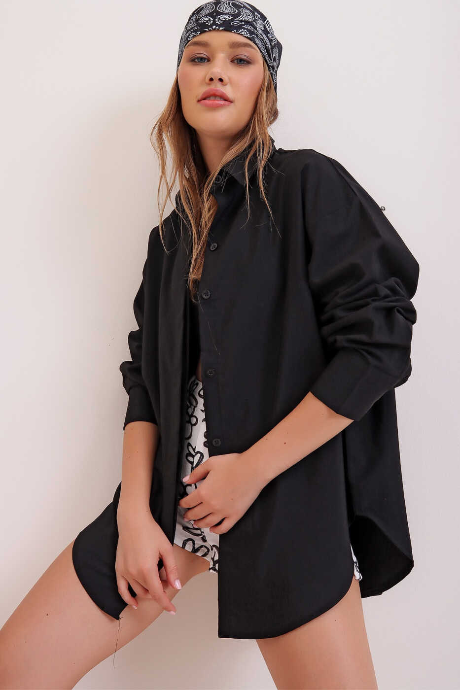 Ayollar uchun qora rangli keng ko'ylak, uslub va qulaylikni birlashtirishni istagan ayollar uchun mukammal tanlovdir. Keng kesimi qulaylikni ta'minlaydi, uzunligi esa sizning uslubingizni to'ldirib beradi. Yumshoq va yuqori sifatli to'qilgan matodan tikilgan ko'ylak butun kun davomida qulaylik beradi.