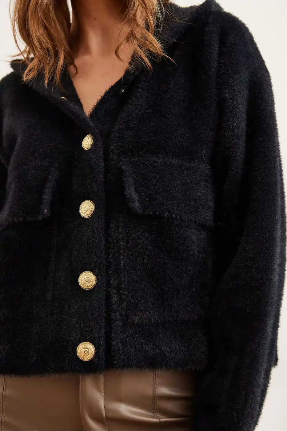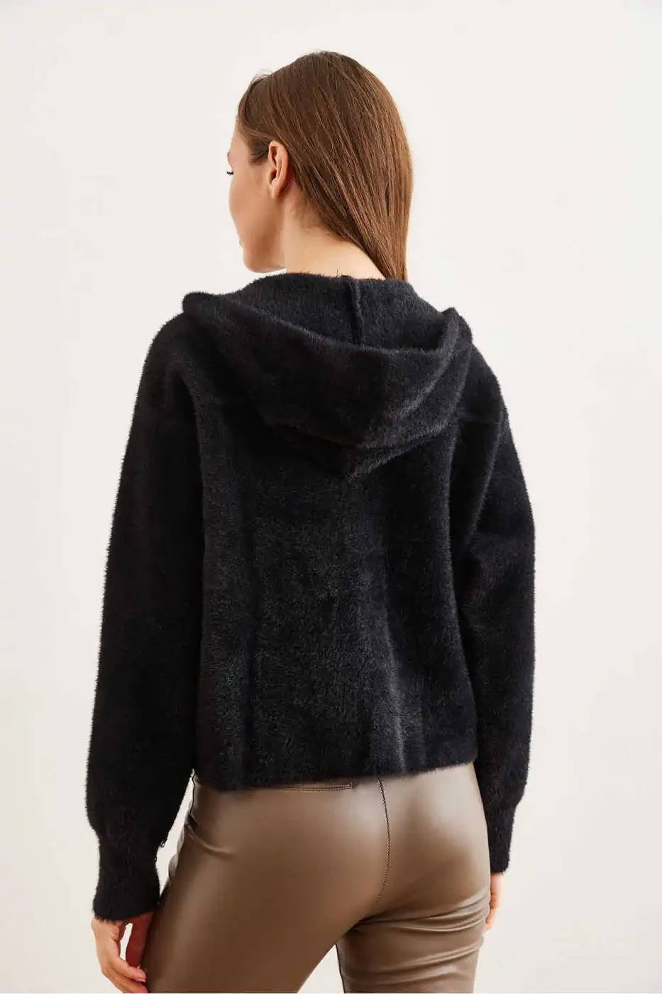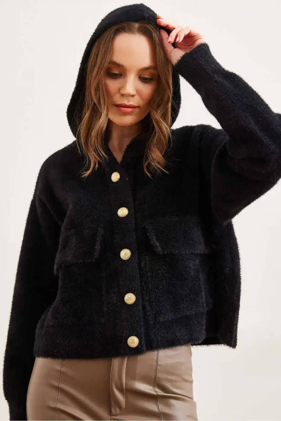 Ayollar uchun hırka, Qora hırka, Kaputli hırka, Yumshoq hırka, Qalin trikotaj hırka, Qishki hırka