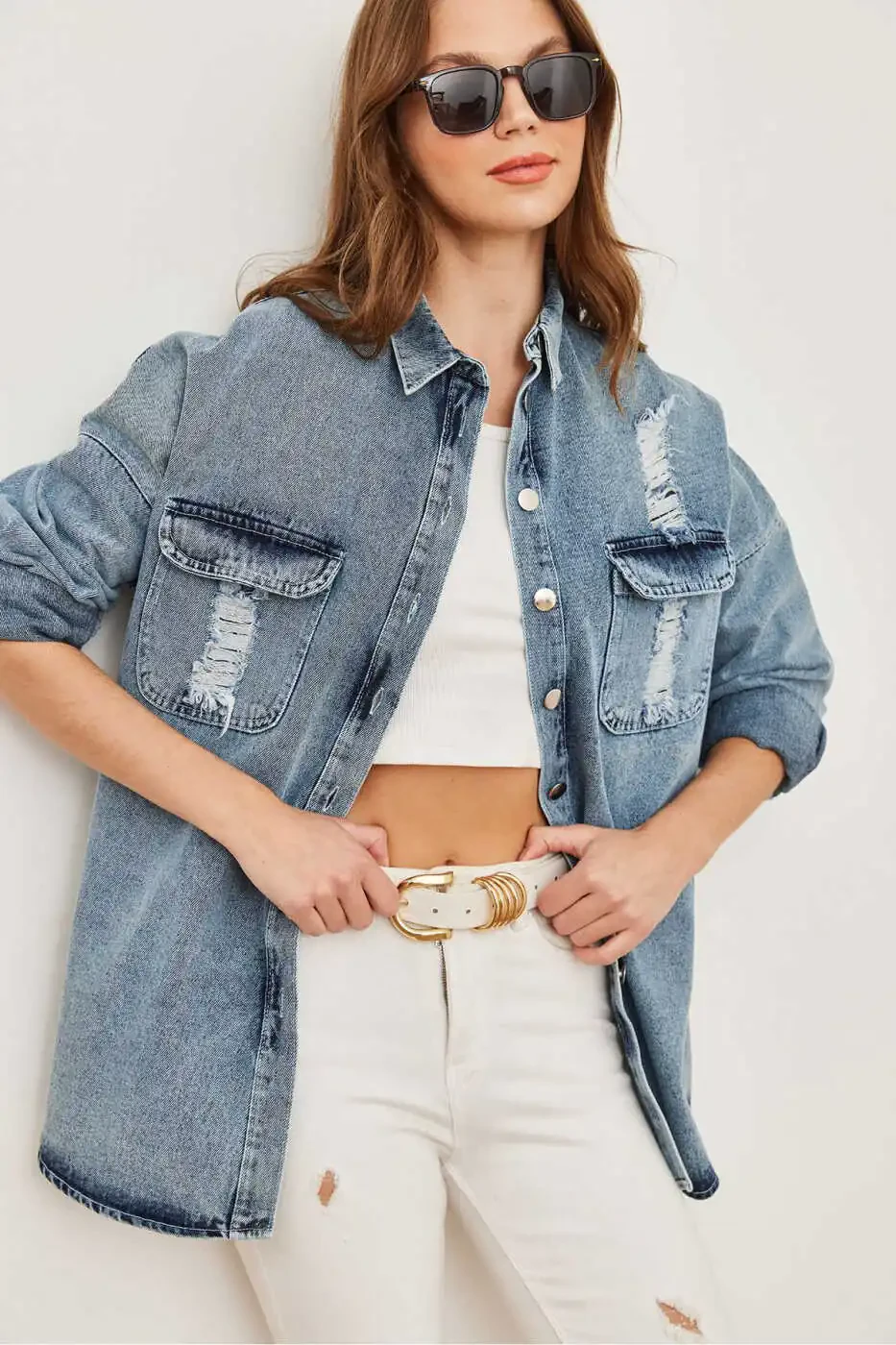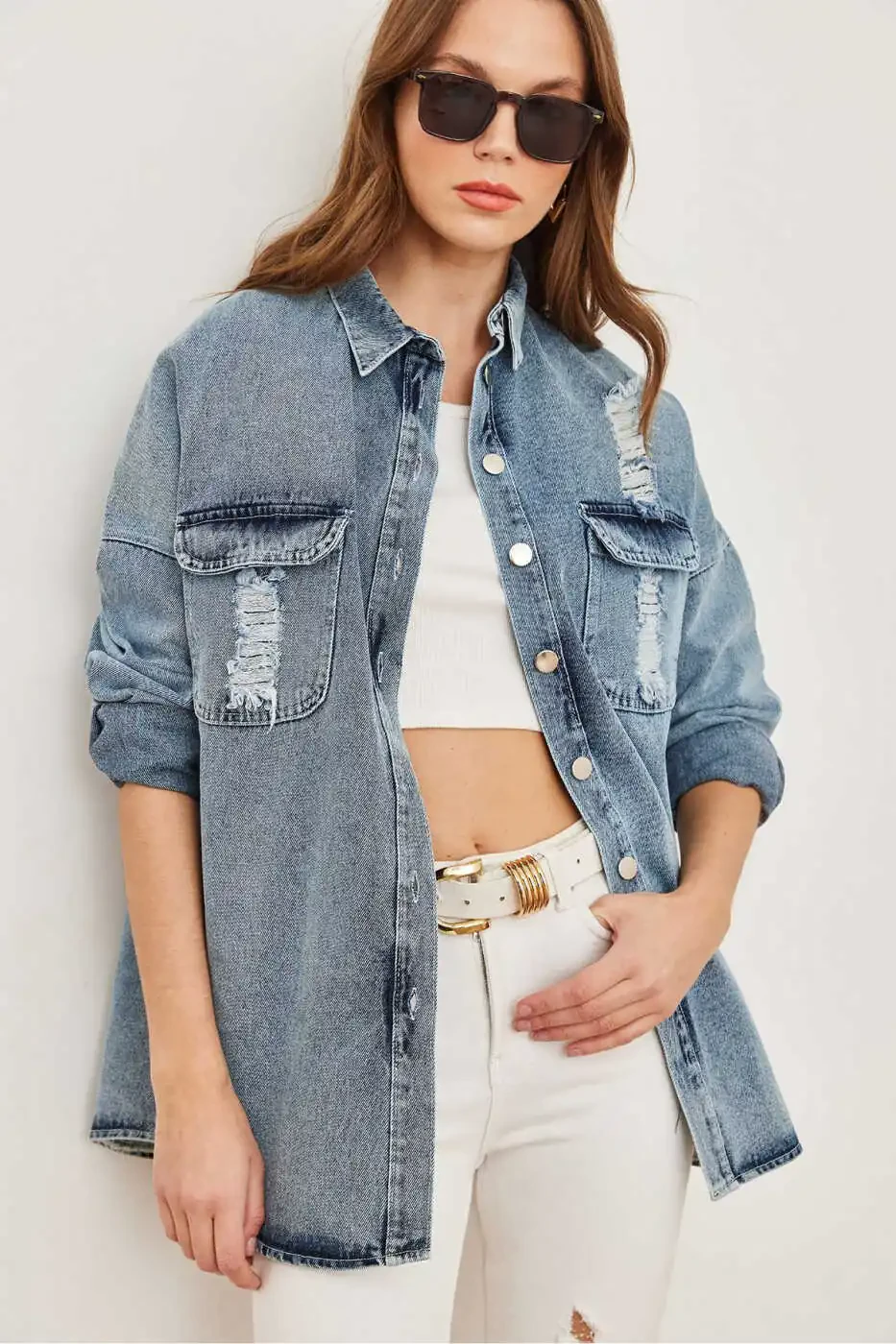 Ayollar uchun mo'ljallangan bu quyuq ko'k jinsi ko'ylagi zamonaviy va nafis ko'rinish taklif etadi. Orqa qismidagi aplike detallari va lazer kesim cho'ntaklari ko'ylagi ajoyib ko'rinishga ega qiladi. 100% paxtadan tayyorlangan ko'ylagi, yumshoq va qulaylikli foydalanish tajribasini taklif etadi. 72 sm uzunlik va 58 sm ko'krak o'lchamiga ega bo'lib, S/36 o'lchamdadir. 10 donadan ortiq zaxirasi mavjud bo'lgan mahsulot, Trendyol - Olalook tomonidan yuboriladi. Kampaniya narxidan sotiladigan mahsulot uchun, 10 dona cheklov qo'yilgan. 15 kun ichida bepul qaytarish huquqidan foydalanishingiz mumkin.