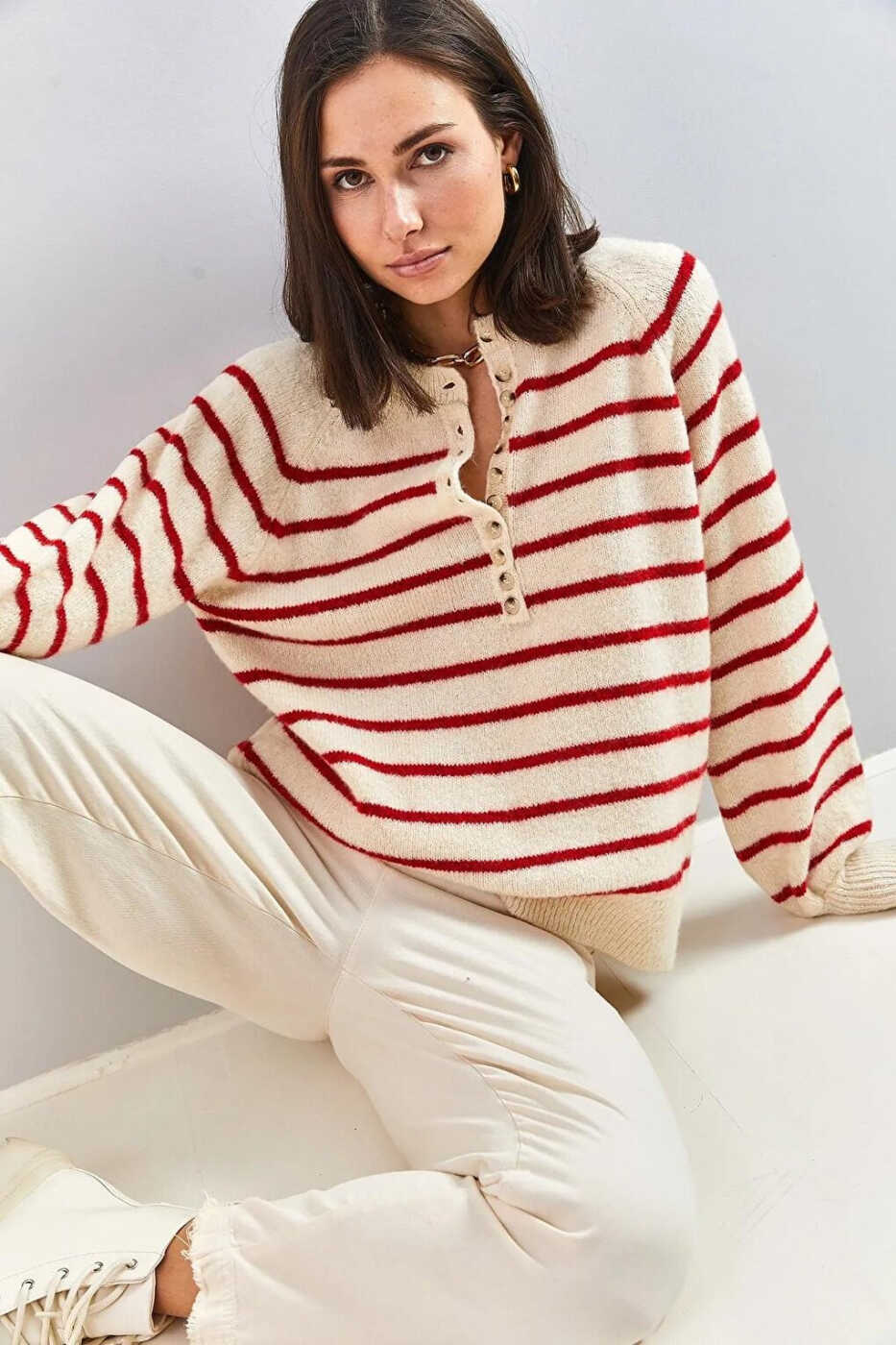 Agar siz uslub va qulaylikni birlashtirgan narsani qidirayotgan bo'lsangiz, ushbu ayollar uchun tugmali baliqchi yoqasi chiziqli trikotaj sviter siz uchun ideal tanlovdir! Hoziroq buyurtma bering va uslubingizga oqlangan teginish qo'shing.