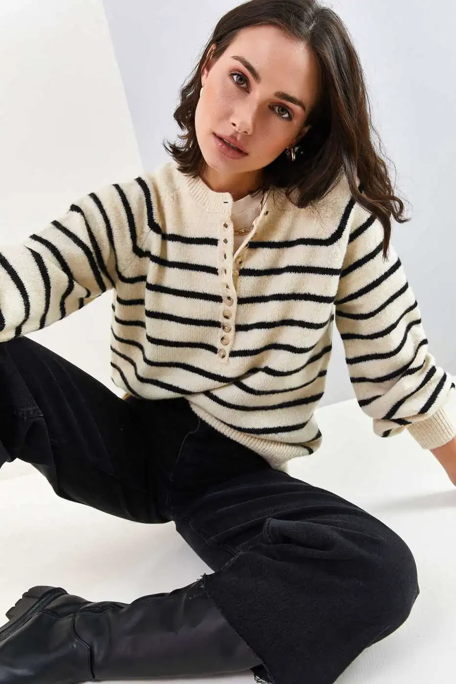 Uslub va qulaylikni birlashtirgan ushbu baliqchi yoqa ko'ylagi sizning shkafingizning ajralmas qismi bo'ladi! Yumshoq va sifatli trikotaj matodan tikilgan ko'ylagi qulaylikni ta'minlaydi, chiziqli dizayni esa jozibali ko'rinish beradi. Tugmali yoqasi uslub va amaliylikni birlashtiradi. U sizni sovuq qish kunlarida isitadi va shu bilan birga uslubingizdan voz kechishingizga to'sqinlik qiladi.