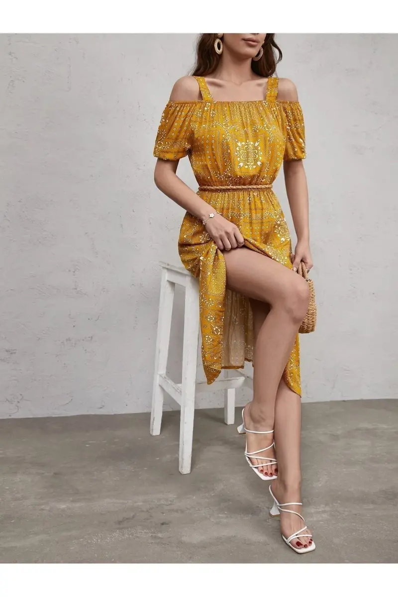 Stil va qulaylikni birlashtirishni istagan ayollar uchun yaratilgan bu ko'ylak shkafingizning ajralmas qismiga aylanadi. Xantal rangi va kvadratli gulli naqsh bilan ajralib turadigan ko'ylak ingichka bretellari va elastik belbandi bilan qulay foydalanish imkonini beradi. Kunlik hayotda, maxsus kunlarda yoki biznes hayotda sizning uslubingizni to'ldirish uchun ideal tanlovdir.
