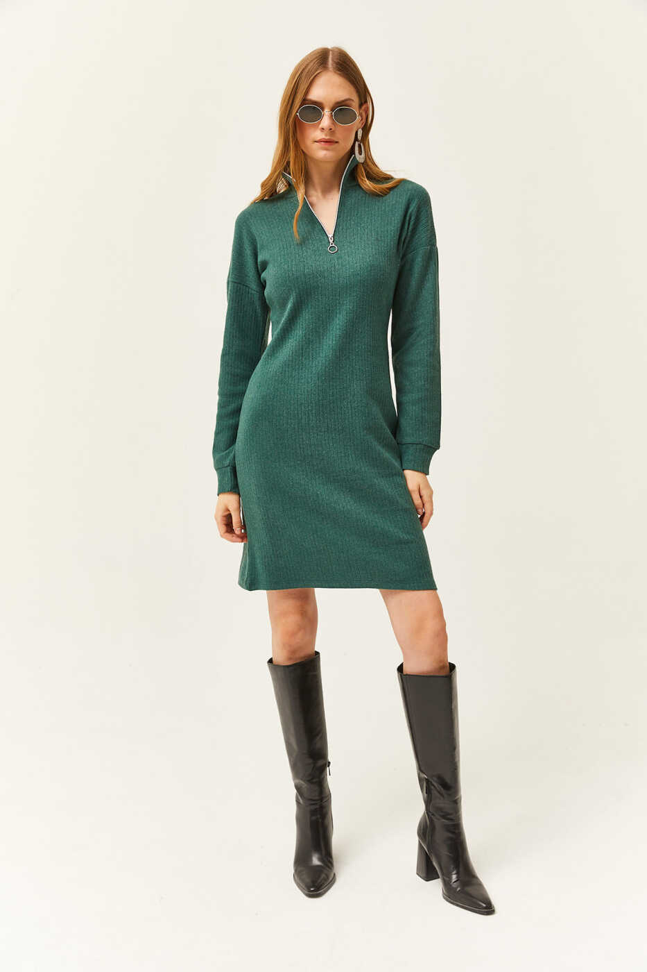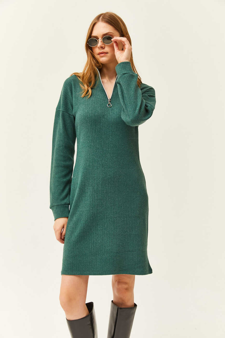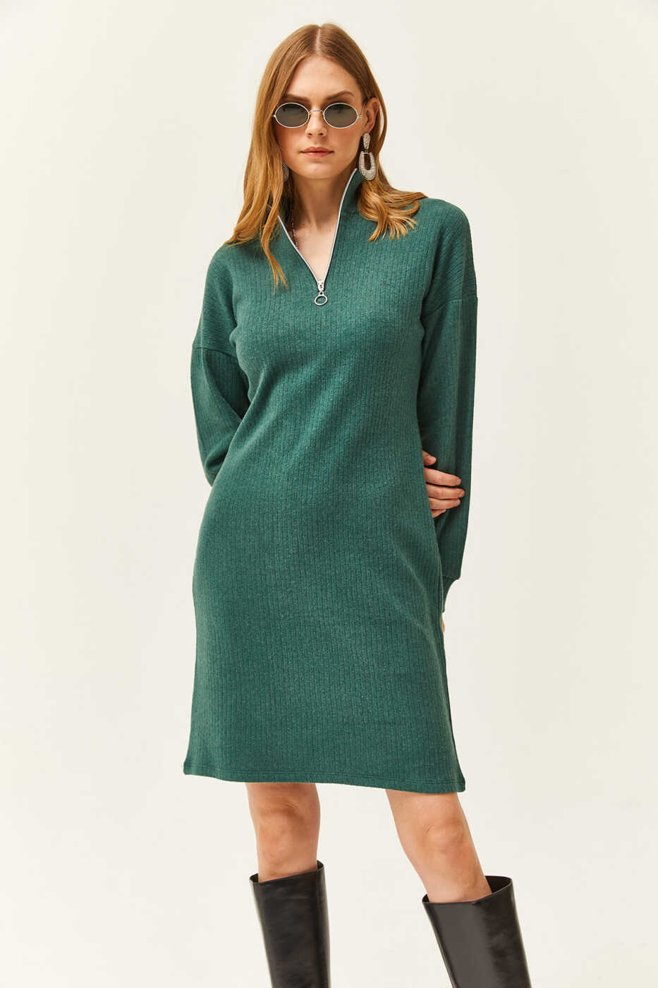 Agar siz stil va qulaylikni birlashtirishni istasangiz, ayollar uchun yashil turuvchi yoqa va fermuarlı bo'sh ko'ylak ELB-19002023 ni hoziroq savatchaga qo'shing!