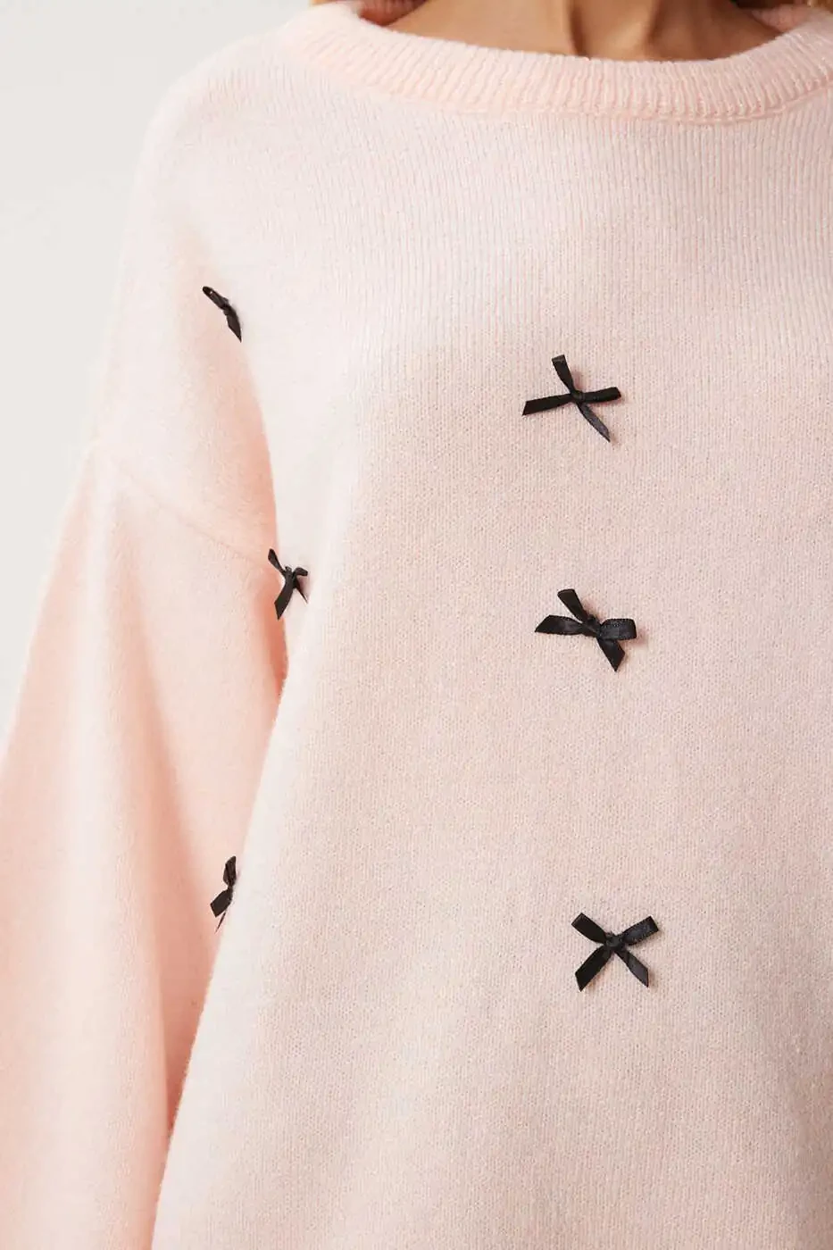 Pudra Fiyonklu Oversize Triko Kazak | Ayollar Triko Kazak Modellari
