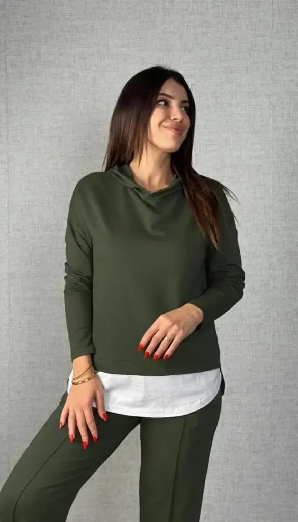 Modelning o'lchamlari asosida o'lchamni tanlash mumkin. Viskon matoning tabiiy tuzilishi tufayli kun bo'yi qulaylik ta'minlaydi. Ikki ipli tuzilish mavsumiy o'tishlarda ideal foydalanishni ta'minlaydi. Kaput va bog'ich detallari to'plamga sport va nafis ko'rinish beradi.