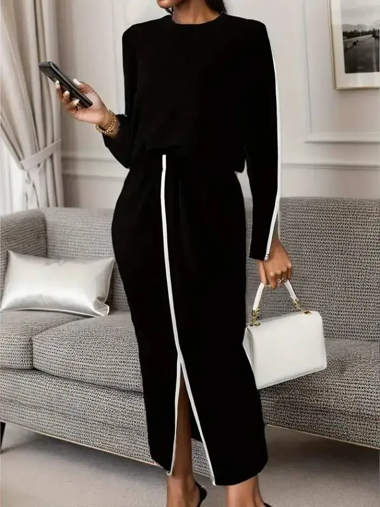 Kaşkorse Bluz & Yirtmachli Etek Takım | Velosiped Yaka, Uzun Kollu | Esnek & Rahat