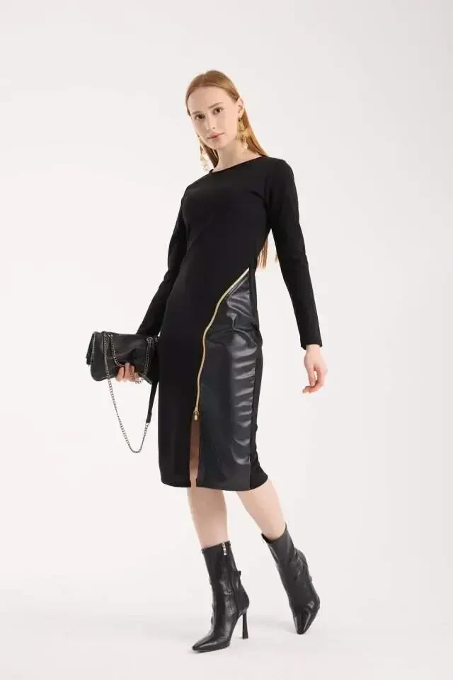 Ayollar uchun velosiped yoqali, uzun yengli, charm va fermuar detallari bo'lgan mini yirtqichli ko'ylak o'ziga xos dizaynga ega bo'lib, nafislik va zamonaviylikni birlashtiradi. Ushbu ajoyib ko'ylak sizning garderobingizning ajralmas qismiga aylanishga nomzod. Charm matoning dadil ko'rinishi, velosiped yoqasining nafis kesimi va uzun yenglarning qulayligi bilan mukammal muvozanatga erishiladi. Mini etek bo'yi sizning ayollik siluetingizni ta'kidlasa, yirtqich detali harakat erkinligingizni cheklamagan holda zamonaviy teginishni ta'minlaydi. Fermuar detallari esa ko'ylakka zamonaviy va dinamik havo beradi. Ham maxsus tadbirlarda, ham kundalik foydalanishda farq qilishingizga imkon beradigan ushbu ko'ylak uslubli ayollarning e'tiborini qozonadi. Ko'ylakning shakli tana bilan mos keladigan kesimi tufayli mukammal ko'rinishni ta'minlaydi. Matoning sifati va tikuvlarning ehtiyotkorlik bilan ishlanganligi uzoq umr ko'rishni va'da qiladi. Turli xil rang va aksessuarlar variantlari bilan birlashtirib, o'z uslubingizni aks ettirishingiz mumkin. Xoh baland poshnali tufli bilan zamonaviy ko'rinishga ega bo'ling, xoh sport poyabzali bilan qulayroq uslub yarating; bu ko'ylak har qanday holatda ham uslubingizni namoyish etishga imkon beradi. Shkafda bo'lishi kerak bo'lgan ushbu maxsus buyum bilan har qanday muhitda ko'zni qamashtiring. Modeldagi mahsulot M/38 o'lchamda va modelning o'lchamlari: Bo'yi: 165, Og'irligi: 55, Ko'krak: 90, Bel: 72, Son: 100. Ushbu ma'lumotlar ko'ylakning sizga qanday mos kelishi haqida tasavvur beradi. Ko'ylakni parvarish qilish ham juda oson; etiketkadagi ko'rsatmalarga rioya qilib, uzoq vaqt davomida birinchi kundagidek foydalanishingiz mumkin. Garderobingizning yulduzi bo'ladigan ushbu ko'ylakni o'tkazib yubormang!