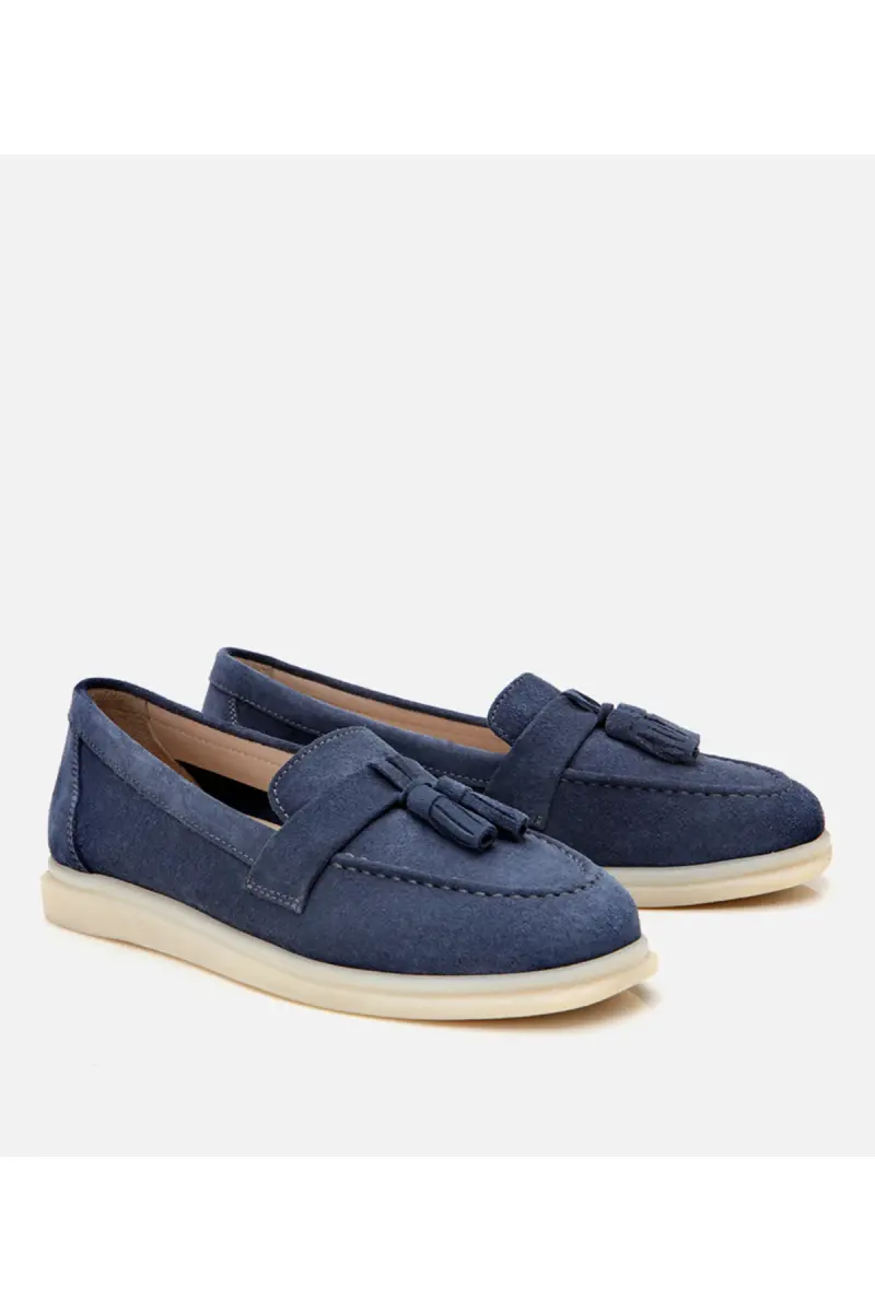 Ayollar loafer, zamsh loafer, ko'k loafer, ponponli loafer, charm loafer, qulay loafer, zamonaviy loafer, ayollar poyafzali, zamsh poyafzal, ko'k poyafzal