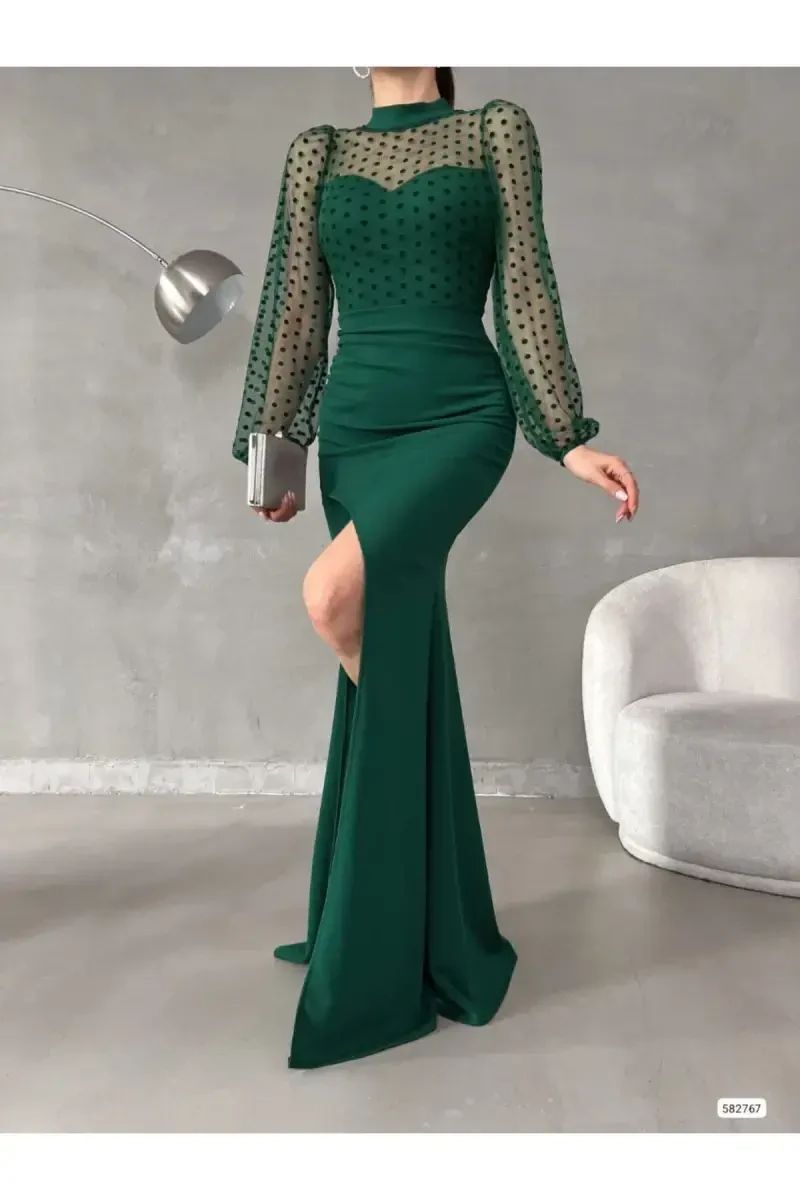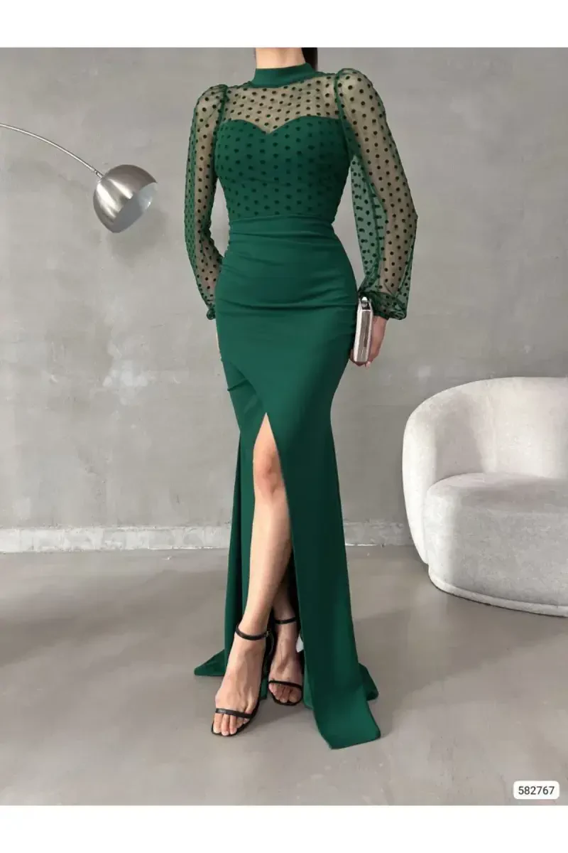 Ayollar zumrad baliqchi yoqali to'rli detallar Yirtqichli katta o'lchamli Maxi kechki libos, maxsus kunlaringizda va zamonaviy ziyofatlaringizda nafisligingizni ta'kidlash uchun mukammal tanlovdir. Zumrad yashil rangining jozibali ohangi, to'r detallari va zamonaviy yirtqich dizayni bilan birgalikda unutilmas ko'rinish yaratadi. Ushbu kechki libos nafaqat zamonaviy, balki qulayligi bilan ham sizning olqishingizga sazovor bo'ladi. Moslashuvchan va qulay stretch siluet dizayni tufayli u har qanday tana turiga mukammal mos keladi. Uzun yengli va baliqchi yoqasi tafsiloti libosga nafislik bag'ishlaydi, yirtqich tafsiloti esa zamonaviy va dinamik teginishni ta'minlaydi. Maxi bo'yi bilan u olijanob va ta'sirchan pozitsiyani ko'rsatadi, to'r detallari esa libosga romantik muhit qo'shadi. Ushbu libos bitiruv va kelinlar kolleksiyalari uchun maxsus ishlab chiqilgan bo'lib, maxsus kunlaringizda ko'zni qamashtiruvchi tanlov bo'lishingiz uchun ehtiyotkorlik bilan tayyorlangan. Libosning to'quv mato turi chidamlilik va qulaylikni birgalikda taklif qilib, uzoq muddatli foydalanish imkoniyatini beradi. Zamonaviy va kechki muhit uchun ideal bo'lgan ushbu kechki libos, nafisligi bilan ajralib turadi, shu bilan birga qulayligingizni qurbon qilmaslikka imkon beradi. Har qanday aksessuar bilan osongina birlashtirilishi turli xil uslublarni yaratishga imkon beradi. Oson parvarishlash afzalliklarini taklif qiluvchi yuvish bo'yicha ko'rsatmalar tufayli libosingizni birinchi kundagidek saqlashingiz mumkin. WoolnClyde sifati bilan taqdim etilgan ushbu kechki libos sizning garderobingizning ajralmas qismiga aylanadi.