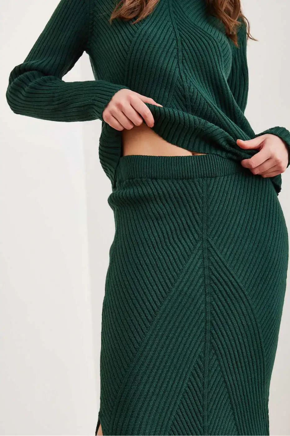 Ayollar Zumrad Yashil Geometrik Toʻqimalli Triko Toʻplam