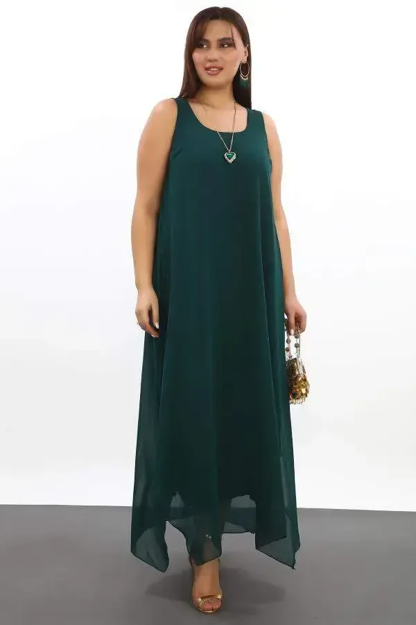 Ayollar uchun qulay kesim shifon bayramona libos | KL3066 Yashil | Qulaylik va jozibadorlik