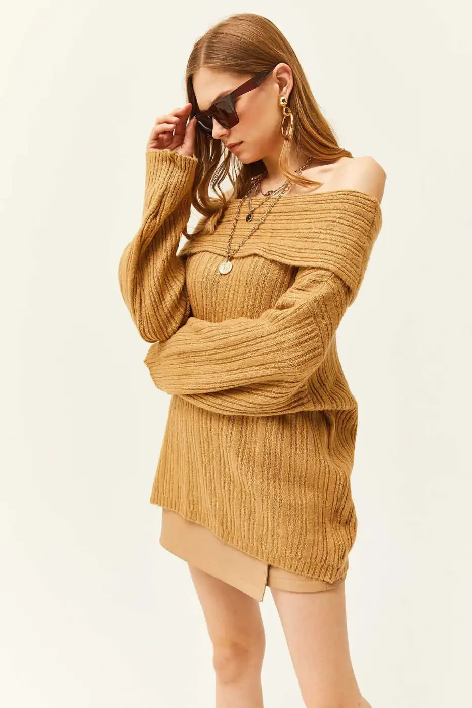 **Ayollar uchun Camel Madonna Yoqali Fitilli Bo‘sh Triko Jild**[page="merchant_info"]Trendyol - Olalook[/page] tomonidan jo‘natiladigan ushbu diqqatga sazovor sviter sizning uslubingizni yanada jozibador qiladi.**Material va Xususiyatlar:*** 100% Akrildan tayyorlangan, yumshoq va qulay.* Madonna yoqasi va fitilli dizayni bilan noyob ko‘rinish taqdim etadi.* Uzunligi: 58 sm, Ko‘krak qafasi: 55 sm o‘lchamlarda.**Model O‘lchovlari:*** Model bo‘yi: 1,76 m* Model ko‘krak qafasi: 84 sm* Model bel qismi: 60 sm* Model son qismi: 90 sm* Model kiygan o‘lcham: Standart**Qo‘shimcha Ma’lumotlar:*** Kampaniya narxi 10 dan ortiq birlikdagi zaxira uchun amal qiladi.* Bir nechta sotuvchi tomonidan sotiladi.* 10 dan ortiq birlik buyurtma qilinmaydi.* 15 kun ichida bepul qaytarish imkoniyati mavjud.* Ranglar, studiya suratlaridagi yorug‘lik farqlari tufayli o‘zgarishi mumkin.* Standart o‘lcham.