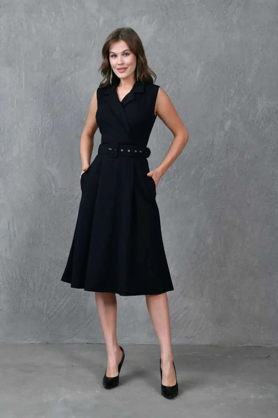 Ushbu nafis ko'ylak moslashuvchan Scuba Krep matodan ishlab chiqarilgan. Ushbu maxsus mato ham nafislik, ham qulaylikni bir vaqtning o'zida taqdim etadi. Kruvaze kurtka yoqa detali klassik va zamonaviy ko'rinishni ta'minlaydi, yengsiz dizayni esa zamonaviy ohang qo'shadi. Kloş kesimi harakatlanish erkinligini ta'minlab, kun bo'yi qulay foydalanishni ta'minlaydi. Ko'ylakning bel qismidagi kamar detali tana shaklingizni nafis tarzda ta'kidlab, ayollik siluetini yaratadi va uslubingizga boshqa bir teginish qo'shadi. Midi uzunligi ham kundalik foydalanishga, ham maxsus tadbirlarga mos nafosatni taqdim etadi. Ko'ylakning qoplamasiz tuzilishi oson kiyish va yechishni ta'minlaydi, ichki ko'rinmaydigan matosi tufayli o'zingizni har doim xavfsiz his qilasiz. Ushbu maxsus dizayn Design kollektsiyasining zamonaviy chiziqlarini aks ettirib, Fashion Forward nuqtai nazaridan trendlarni kuzatib boradigan stil egasi ayollarning e'tiboriga havola etiladi.