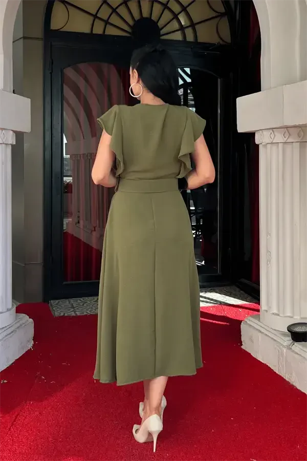 Ayrobin Kumaş Düğme Detaylı Elbise ile şıklığı ve rahatlığı bir arada yaşayın! Haki yeşili rengiyle doğanın tonlarını üzerinizde taşıyacak bu elbise, ayrobin kumaşın eşsiz dokusu sayesinde gün boyu konfor sunar. Elbisenin göğüsten itibaren 110 cm uzunluğu, hem günlük kullanım hem de özel günler için ideal bir boydur. Bu ölçü, hareket özgürlüğünüzü kısıtlamadan zarif bir görünüm elde etmenizi sağlar. Ayrobin kumaş, hafif ve nefes alabilen yapısıyla özellikle sıcak havalarda tercih edebileceğiniz bir kumaş türüdür. Terletmeyen özelliği sayesinde gün boyu ferah kalırsınız.Elbisenin ön kısmında yer alan düğme detayları, tasarıma modern ve şık bir dokunuş katar. Düğmelerin özenle yerleştirilmesi, elbisenin genel estetiğini tamamlar niteliktedir. Fermuarı bulunmayan bu elbise, kolayca giyilip çıkarılabilir özelliğiyle pratik bir kullanım sunar. Göğüslük ve astar bulunmaması, elbisenin hafifliğini ve rahatlığını artırır. Ancak, iç göstermeyen kumaşı sayesinde gönül rahatlığıyla kullanabilirsiniz.Elbise, tam kalıp olarak tasarlanmıştır, bu da üzerinize tam oturacağı ve vücut hatlarınızı güzel bir şekilde ortaya çıkaracağı anlamına gelir. Kemer detayı ise, belinizi vurgulayarak daha fit bir görünüm elde etmenize yardımcı olur. Kemer, elbiseyle birlikte gönderilmektedir ve kombininizi tamamlayıcı bir aksesuardır.Bu elbise, gardırobunuzun vazgeçilmez parçalarından biri olmaya aday. İster günlük kombinlerinizde sandalet ve hasır şapka ile kullanın, ister özel bir davette şık topuklu ayakkabılar ve zarif takılarla kombinleyin. Her durumda stilinizi yansıtacak ve dikkatleri üzerinize çekeceksiniz. Ayrobin Kumaş Düğme Detaylı Elbise, hem rahatlığına düşkün hem de şıklığından ödün vermek istemeyen kadınlar için mükemmel bir seçimdir. Haki yeşili rengiyle her ortama uyum sağlayan bu elbise, gardırobunuzda mutlaka bulunması gereken bir parçadır.