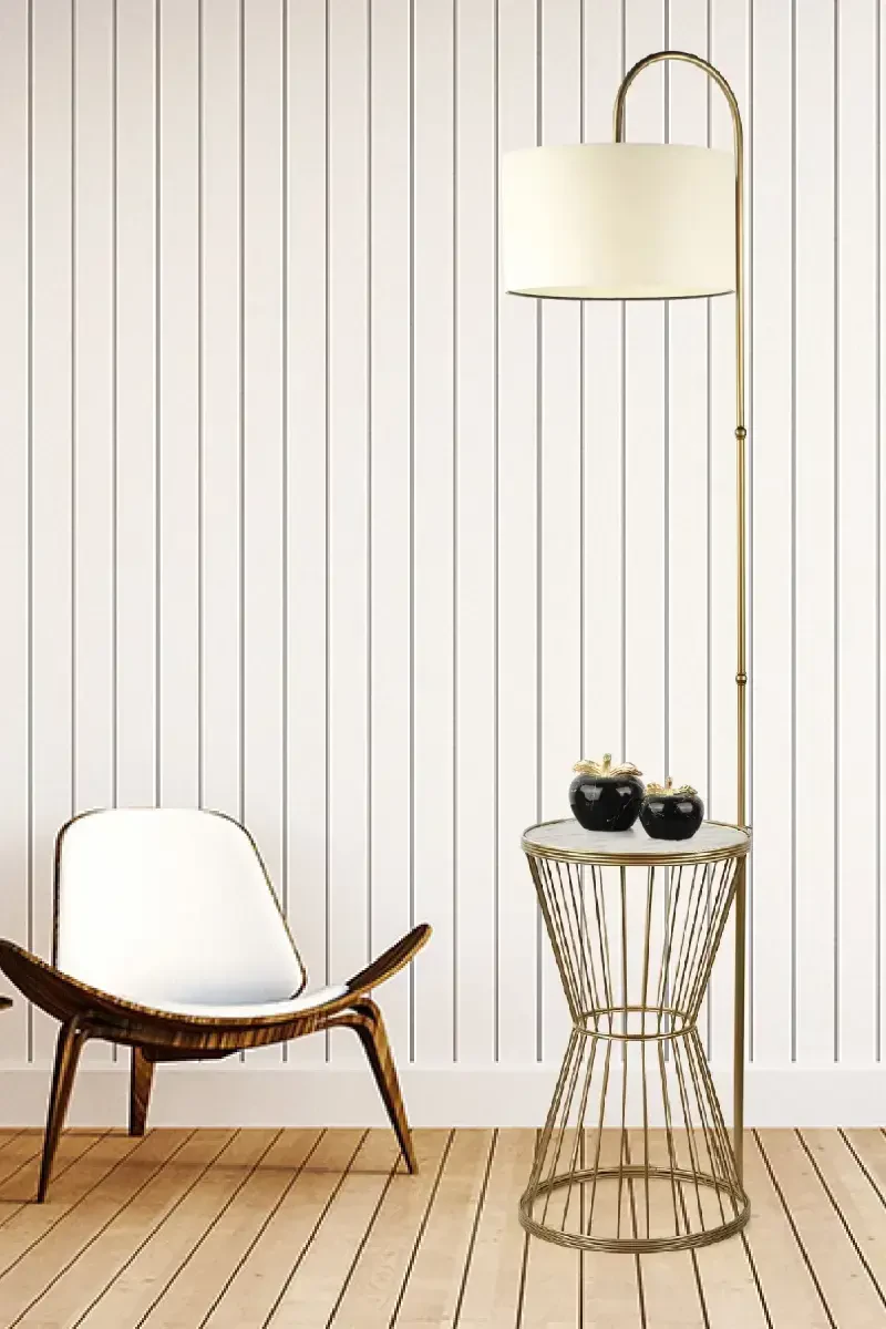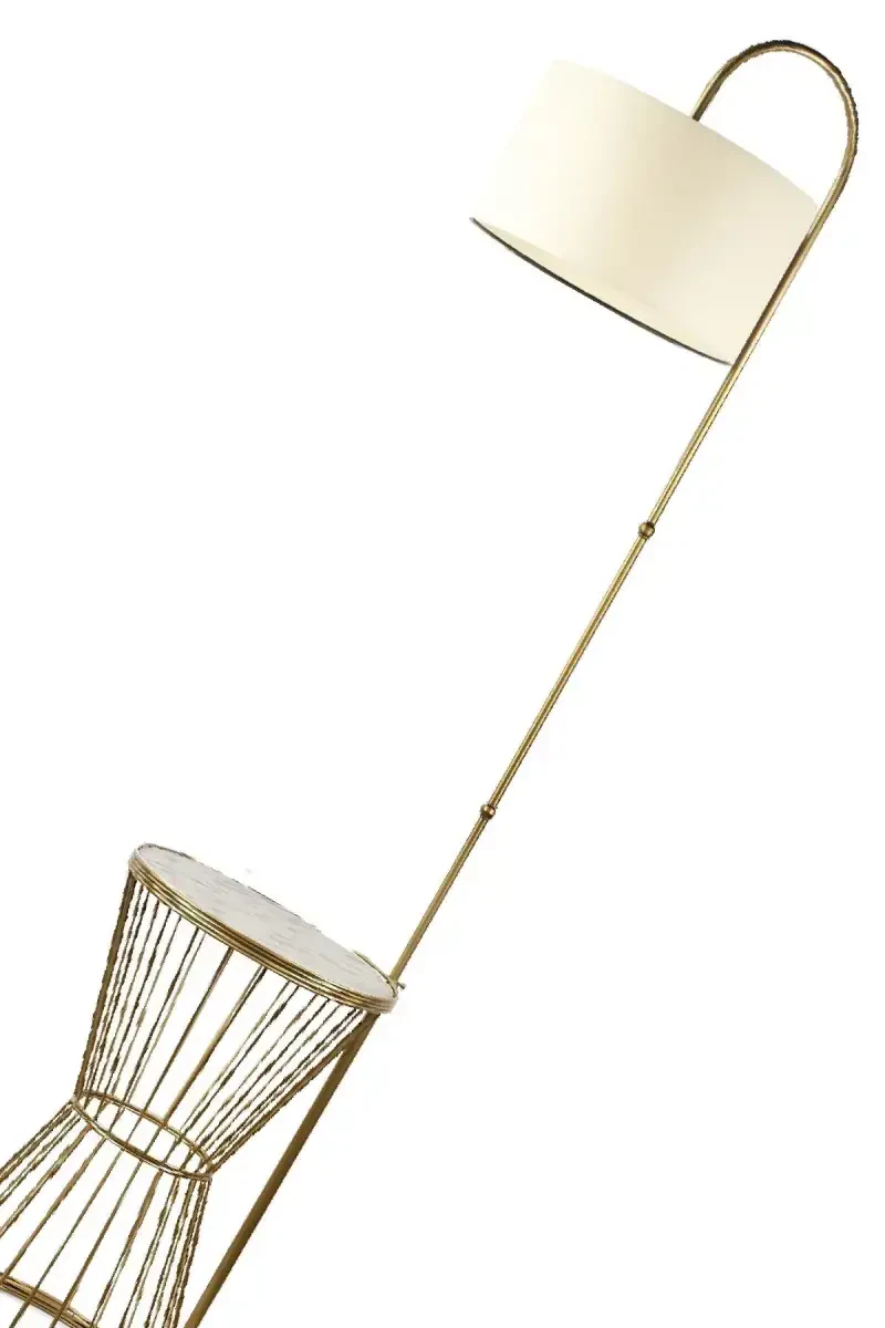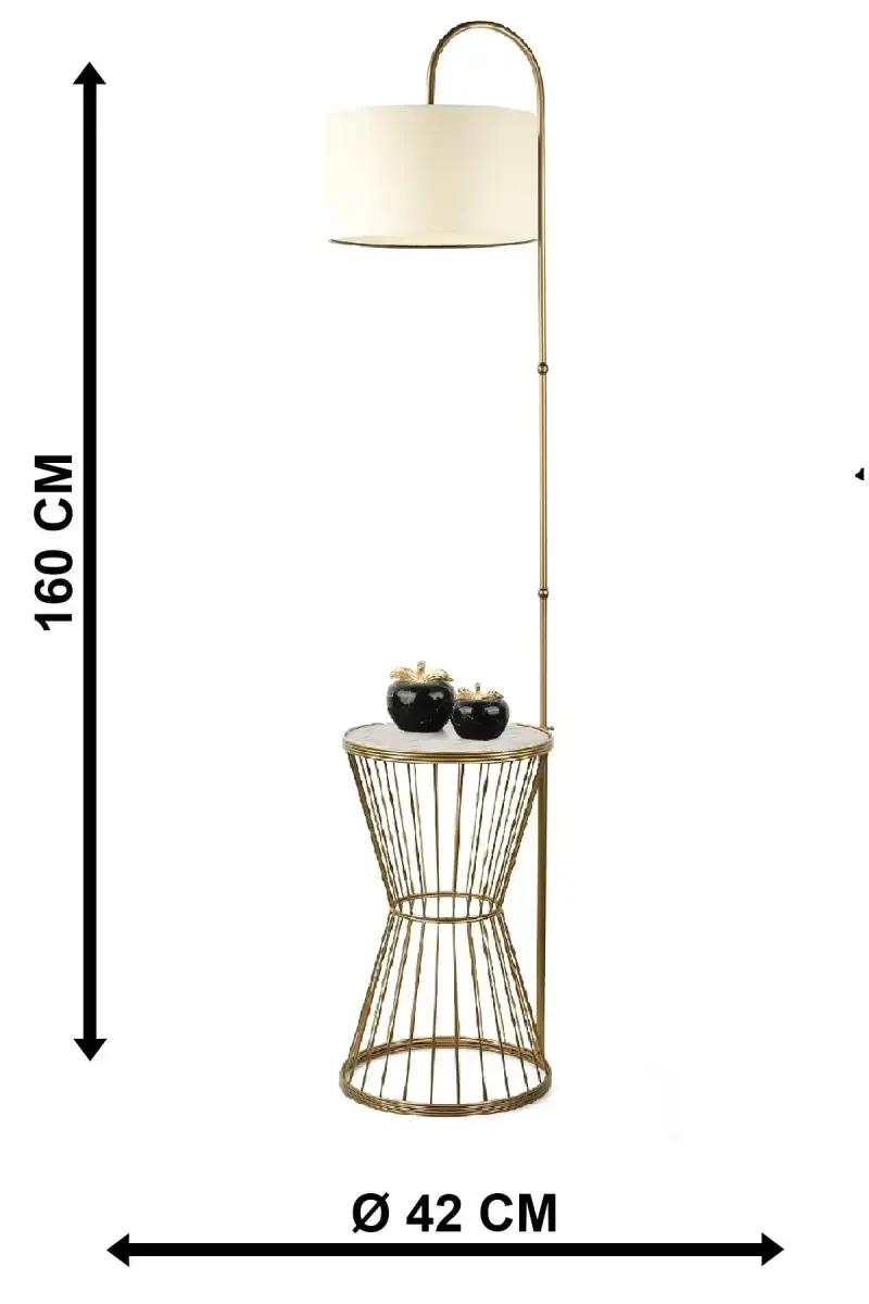 Aytuğ Sehpa Lambader | Eskitma Marmar Yog'och Krem Shapka | Dekorativ Yorug'lik