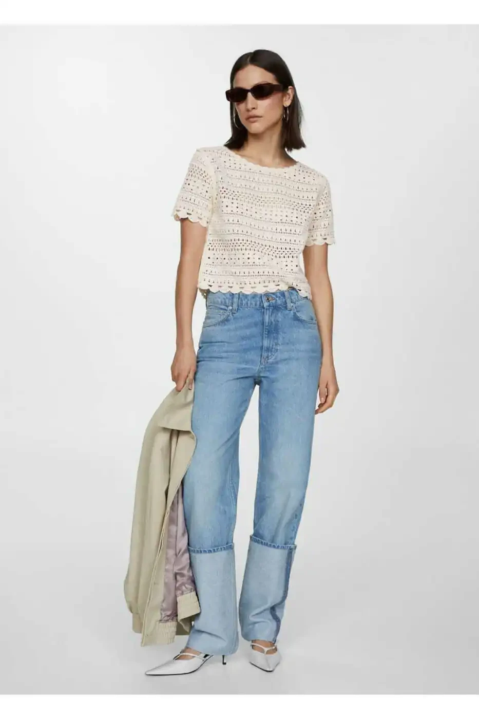 Встречайте идеальное сочетание стиля и комфорта — наш ажурный трикотажный свитер! Этот изысканный свитер станет неотъемлемой частью вашего гардероба и легко дополнит ваши повседневные ансамбли благодаря своему шикарному дизайну. С классическим круглым вырезом и короткими рукавами он представляет собой идеальный баланс между изысканностью и комфортом.