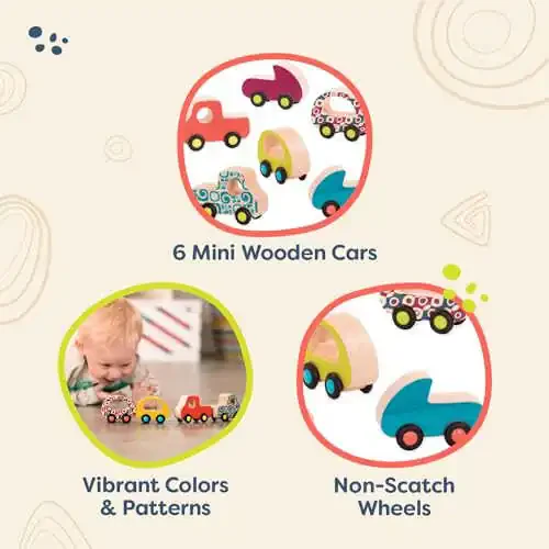 Набор из 6 маленьких деревянных игрушечных автомобилей B. toys - это замечательный подарок, который сделает игру вашего ребенка более веселой и познавательной.