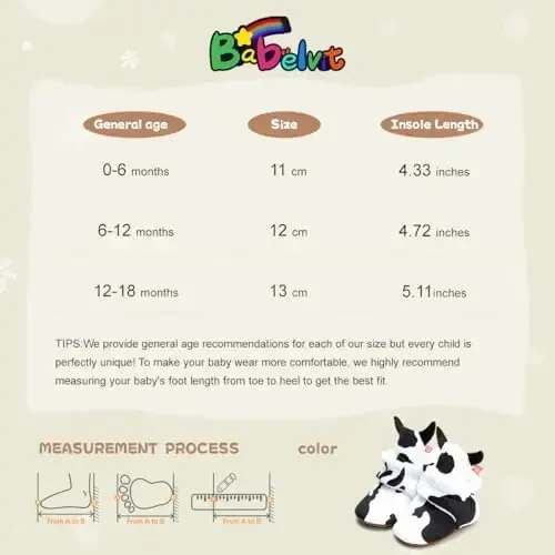 Beden seçimi için bebeğinizin ayak uzunluğunu ölçerek beden tablosunu kontrol ediniz. Geniş ayaklı veya yüksek kavisli bebekler için bir beden büyük tercih edilebilir. İlk doğum günü, parti ve aile törenleri gibi özel günler için mükemmel bir hediye seçeneğidir.