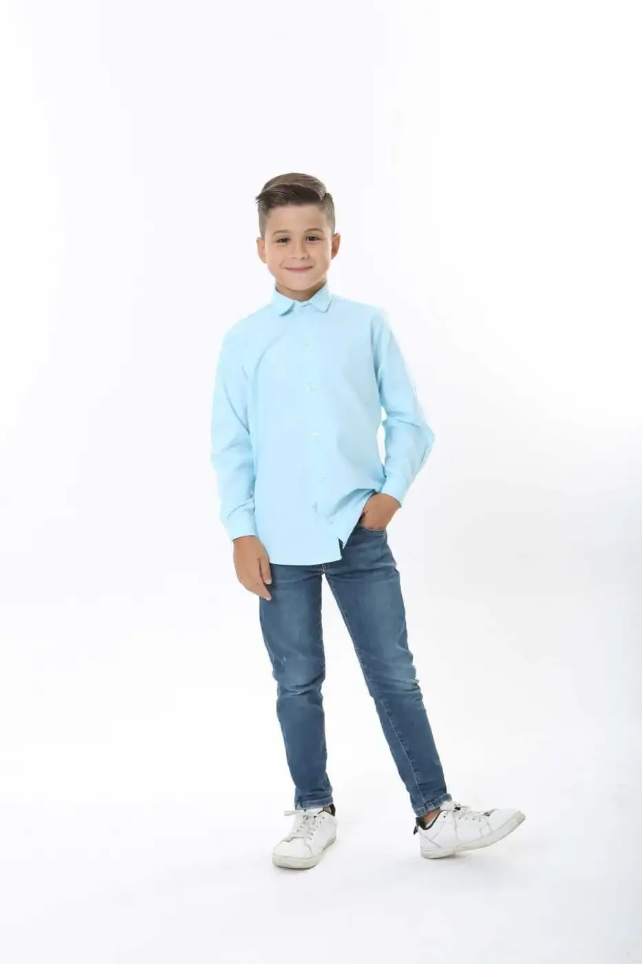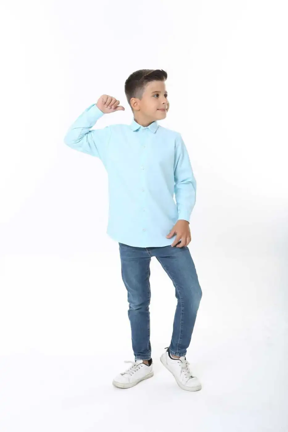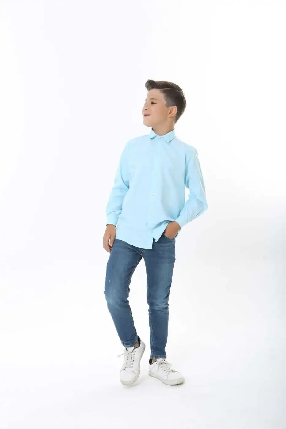 The Baby Blue Children's Shirt is the perfect choice for your little prince, combining comfort and style with its soft texture and chic design. Made from cotton, this shirt gently touches delicate baby skin, while its breathable structure ensures your baby stays comfortable all day long.