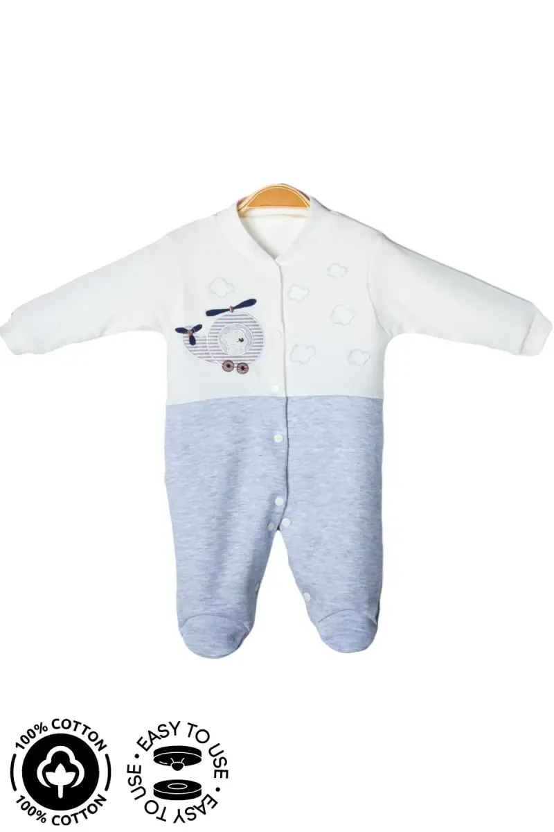 The Boys' Baby Bear Embroidered 3-6-9 Months Knitted Organic Cotton Footed Baby Jumpsuit offered by Minielbaby® has been designed prioritizing your baby's comfort and health. This special design jumpsuit is made of 100% organic cotton fabric that does not harm your baby's sensitive skin. Organic cotton helps your baby's skin breathe while minimizing the risk of allergic reactions. This jumpsuit offered with Minielbaby® quality draws attention with its discounted price and is available in limited stock. Ideal for daily use, this jumpsuit offers your baby comfort and style together. Thanks to its basic silhouette and regular fit, it does not restrict your baby's freedom of movement, allowing them to move comfortably throughout the day. The long-sleeved design keeps your baby's arms warm, while the V-neck detail adds a modern and cute look. The teddy bear embroidered and patterned design makes the jumpsuit even more adorable, adding a stylish touch to your baby's wardrobe. Its snap-fastened bottom design offers practical use. This feature makes it easy to change your baby's diaper and helps you save time. You can easily dress and undress the jumpsuit. A part of the homewear collection, this jumpsuit is ideal for spending comfortable times at home. The straight-leg design allows your baby to move comfortably. This jumpsuit is not only stylish and comfortable but also offers the best for your baby's health. The organic cotton fabric prevents irritation of your baby's skin and ensures they are comfortable all day long. This jumpsuit, which cares for your baby's sensitive skin, also puts mothers at ease. You can ensure the long-lasting use of the product by following the washing instructions. By washing at a maximum of 30°C without using bleach, you can protect the color and texture of the jumpsuit. The Minielbaby® Boys' Baby Bear Embroidered Jumpsuit will be an indispensable part of your baby's wardrobe. You can safely use this jumpsuit, which is both comfortable and stylish, in your baby's first months. It is an ideal choice for mothers who care about their baby's health and comfort.