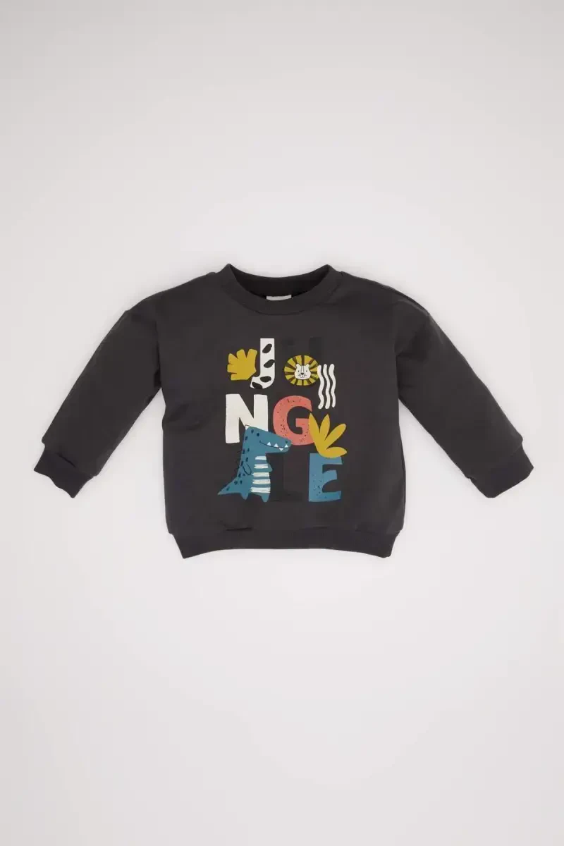 This crew neck sweatshirt, which combines the style and comfort of a little gentleman, will keep your baby warm on cold winter days with its soft fleece lining. This sweatshirt, with its cute print, will reflect your baby's style and is a perfect choice for everyday use.