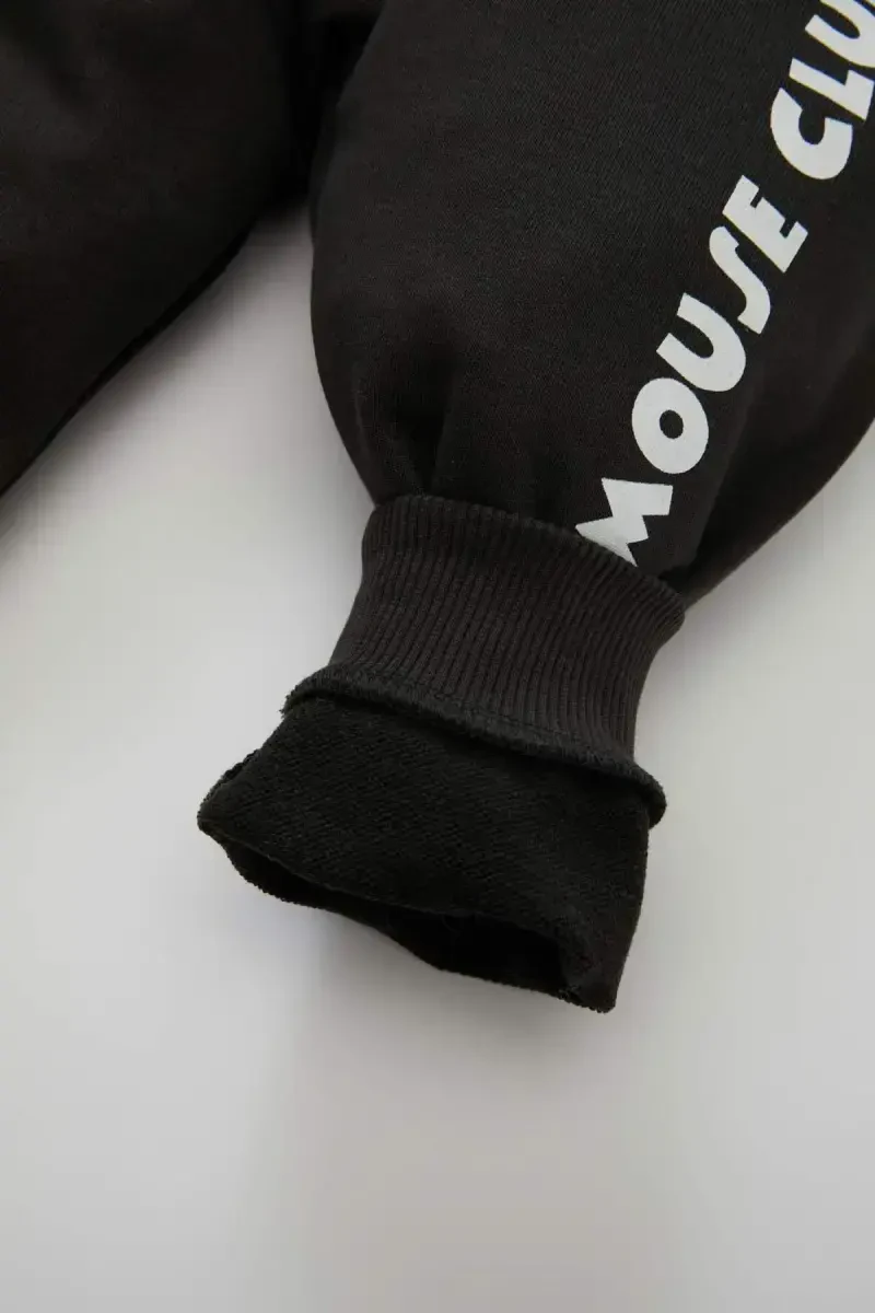 The sweatpants feature cute Mickey and Minnie figures on the front, while the adjustable elastic waistband at the waist allows your baby to move freely. The elastic cuffs at the ankle keep their feet warm.