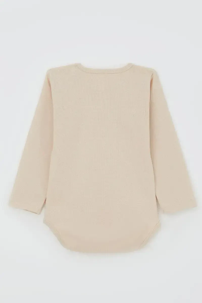 Designed for your baby boy, the Baby Boy Snap Bodysuit Basic combines comfort and style and is produced with care for the delicate skin of little ones. Suitable for babies from 9 months to 3 years old, this bodysuit is specially designed for your baby to move comfortably. Ideal for everyday use, this basic bodysuit will ensure your baby's comfort both at home and outdoors. Thanks to its long-sleeved design, it keeps your baby warm in cool weather, while its snap-fastener structure makes it easy to put on and take off. This bodysuit, which attracts attention with its special prints that do not harm babies' sensitive skin, will be an indispensable part of your baby's wardrobe.Our product does not contain any substances that will harm your baby's health. The cotton fabric used allows your baby's skin to breathe and prevents sweating. In this way, your baby stays comfortable and happy all day long. The snaps on the romper are made of nickel-free material and minimize the risk of allergies. This bodysuit, designed for your baby's sensitive skin, will also put mothers at ease.The Baby Boy Snap Bodysuit Basic is available in different color and pattern options. By choosing the one that suits your baby's style, you can always make him look stylish and cute. Our product is also very easy to care for. It can be washed in the washing machine and ironed. Thanks to its long-lasting structure, you can use it as if it were the first day, even as your baby grows.This bodysuit is not just a piece of clothing, but also an investment in your baby's comfort and health. It is an ideal choice for all mothers who want to offer her the best. Choose the Baby Boy Snap Bodysuit Basic for your baby's happiness and comfort.