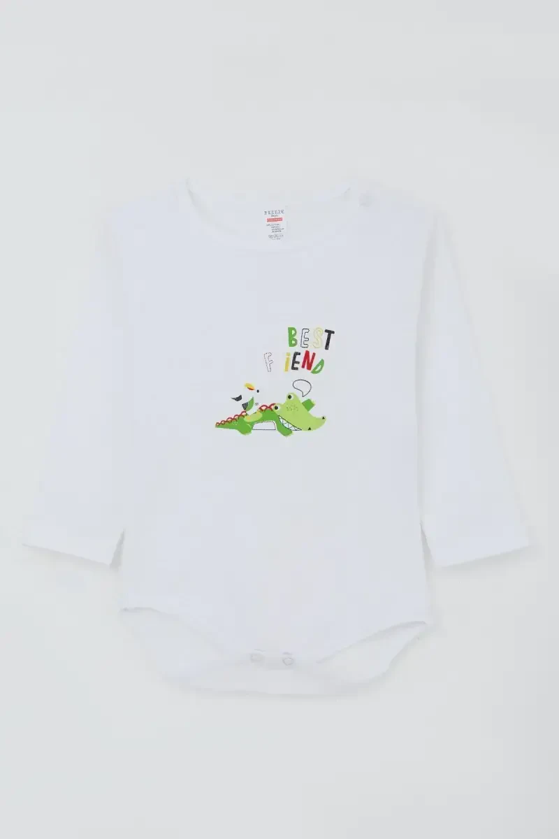 baby bodysuit, snap-closure bodysuit, crocodile print, baby boy, cotton bodysuit, baby clothing, 9 months, 3 years, daily use, baby fashion