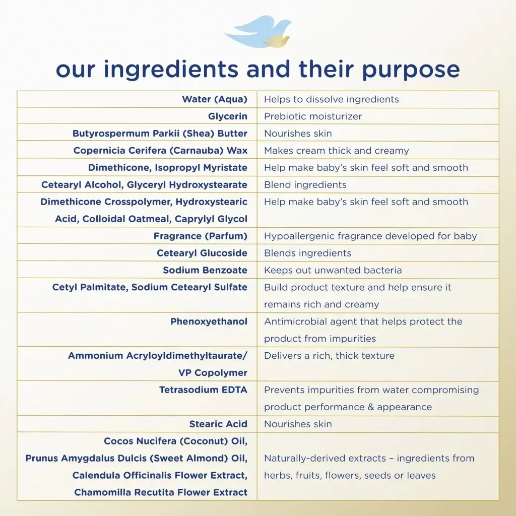 Baby Dove Sensitive Melanin-Rich Cream Newborn Hypoallergenic Nourishing Moisturizer kundalik foydalanish uchun mos keladi va sizning chaqalog'ingizning terisi sog'lom va baxtli bo'lish uchun kerakli namlikni ta'minlashga yordam beradi.