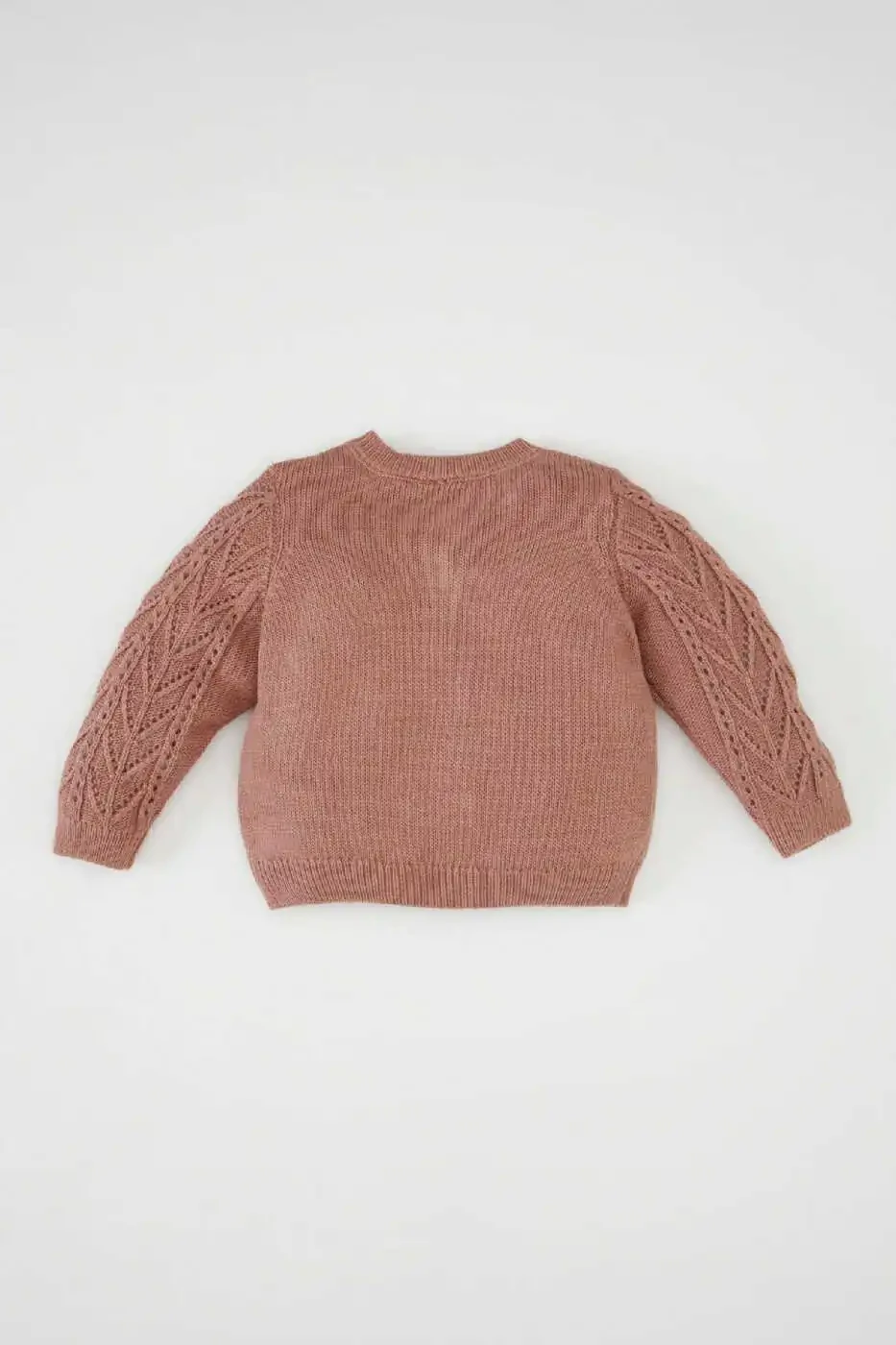 The Girls Baby Cardigan with Round Neck and Buttons is a stylish and comfortable option for your little princess. Its soft texture and cute design are eye-catching. The round neck detail and buttoned front closure offer practical use while prioritizing your baby's comfort.