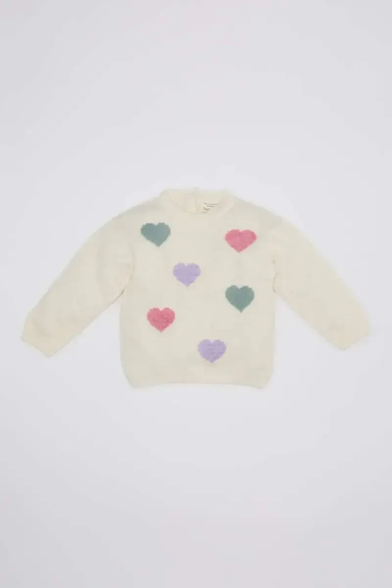 A stylish and adorable choice for your little princess! This crew neck sweater, with its soft texture and cute heart pattern, will make your baby look comfortable and stylish all day long. Made from quality materials, the sweater is gentle on your baby's delicate skin and is ideal for long-lasting use. The crew neck design allows your baby to stay comfortable and not restrict their freedom of movement. In addition, the sweater is easy to wash and iron, making it very easy to care for.