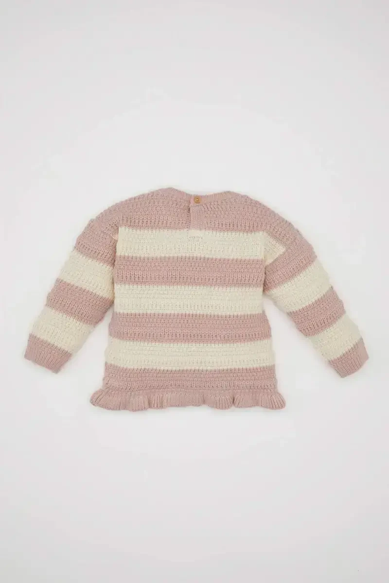 This bike neck striped sweater, a stylish and comfortable option for your little princess, stands out with its soft texture and cute design. Made of cotton blend fabric, the sweater gently touches your baby's delicate skin, providing a comfortable use. With its striped pattern, the sweater acquires a stylish and modern look, adding vibrancy to your baby's daily outfits.