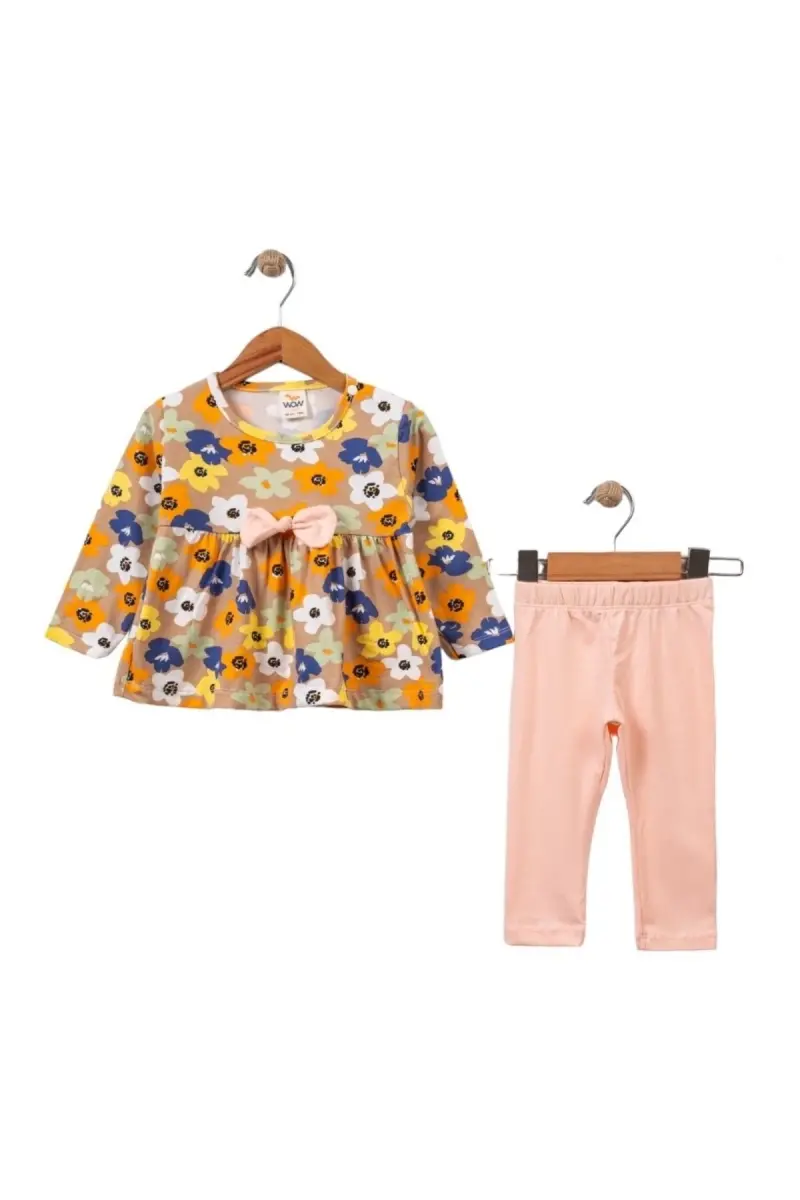 100% Cotton, Floral Patterned, Bow Detailed, Girl's ClothingProduct DescriptionMeet the Baby Girl Top and Bottom Set with Floral Pattern and Bow Detail - Salmon color, which will highlight the elegance and style of your little princess! This adorable set is made of 100% cotton, taking care of your baby's delicate skin. Thanks to its soft texture, your baby will be comfortable all day long and will be able to move freely. The pastel salmon color supports the sweet and innocent look of the set, while the vibrant floral patterns reflect your baby's energy.The top of the set has a practical design so that your baby can be easily dressed. The eye-catching floral patterns ensure that your baby attracts attention in any environment. The most striking detail of the set is the stylish bow accessories. These elegant details add a different touch to the set and complete your baby's style. The bottom piece is designed with your baby's comfort in mind. The elastic waistband does not restrict your baby's movements and offers all-day comfort.The Baby Girl Top and Bottom Set with Floral Pattern and Bow Detail - Salmon not only offers a stylish look, but also wins the appreciation of mothers with its practical usage features. Thanks to its cotton fabric, it can be easily washed and ironed. In this way, your baby's clothes are always clean and well-groomed. The set is an ideal choice to complete your baby's elegance in daily use as well as on special days and invitations. Don't miss this special set that will add elegance and joy to your baby's wardrobe! Remember, a happy baby means a happy mother. Therefore, the Baby Girl Top and Bottom Set with Floral Pattern and Bow Detail - Salmon, which offers your baby's comfort and style together, will be a perfect choice for you.Product Features* 100% Cotton* Floral Patterned* Bow Detailed* Girl's ClothingAdditional InformationIt is recommended to follow the washing instructions on the label for the product to last longer. It is recommended to wash the product inside out to prevent the colors from fading. Using low heat during ironing will prevent damage to the fabric.