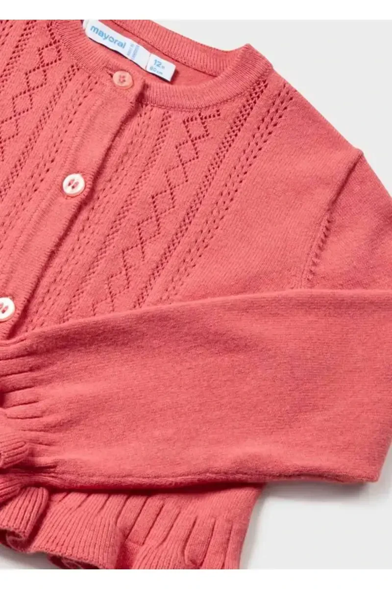 You can use the baby girl ruffle button cardigan to add elegance to your baby's everyday outfits, or choose it for special occasions. This cardigan, which prioritizes your baby's comfort and style, will become one of your favorites.